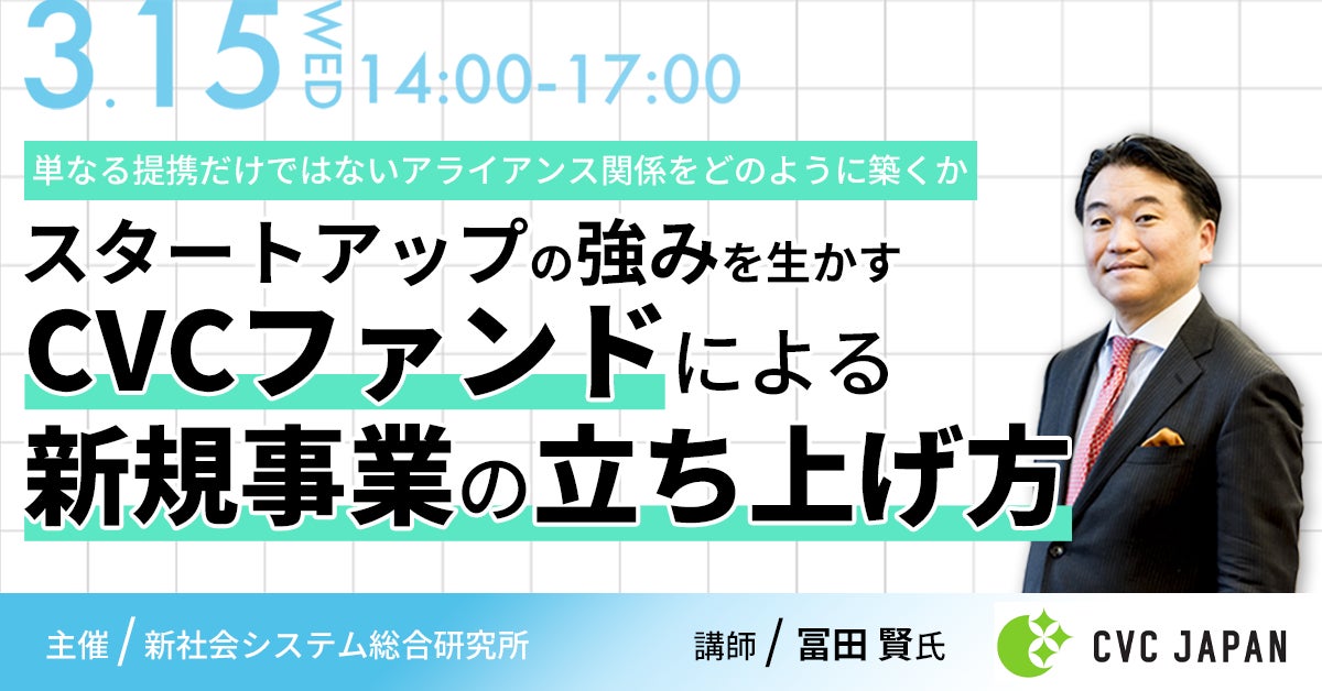 「スタートアップの強みを生かすCVCファンドによる新規事業の立ち上げ方」と題して、CVC JAPAN(株) /博士(政策・メディア)冨田 賢氏によるセミナーを2023年3月15日(水)に開催!!