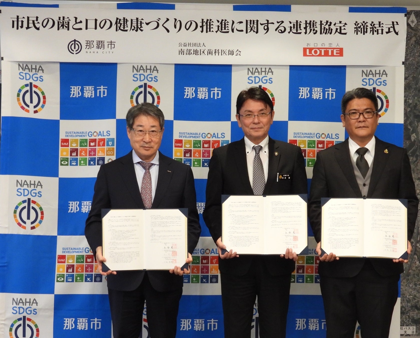 沖縄県那覇市、(公社)南部地区歯科医師会、ロッテ「市民の歯と口の健康づくりの推進に関する連携協定」を締結