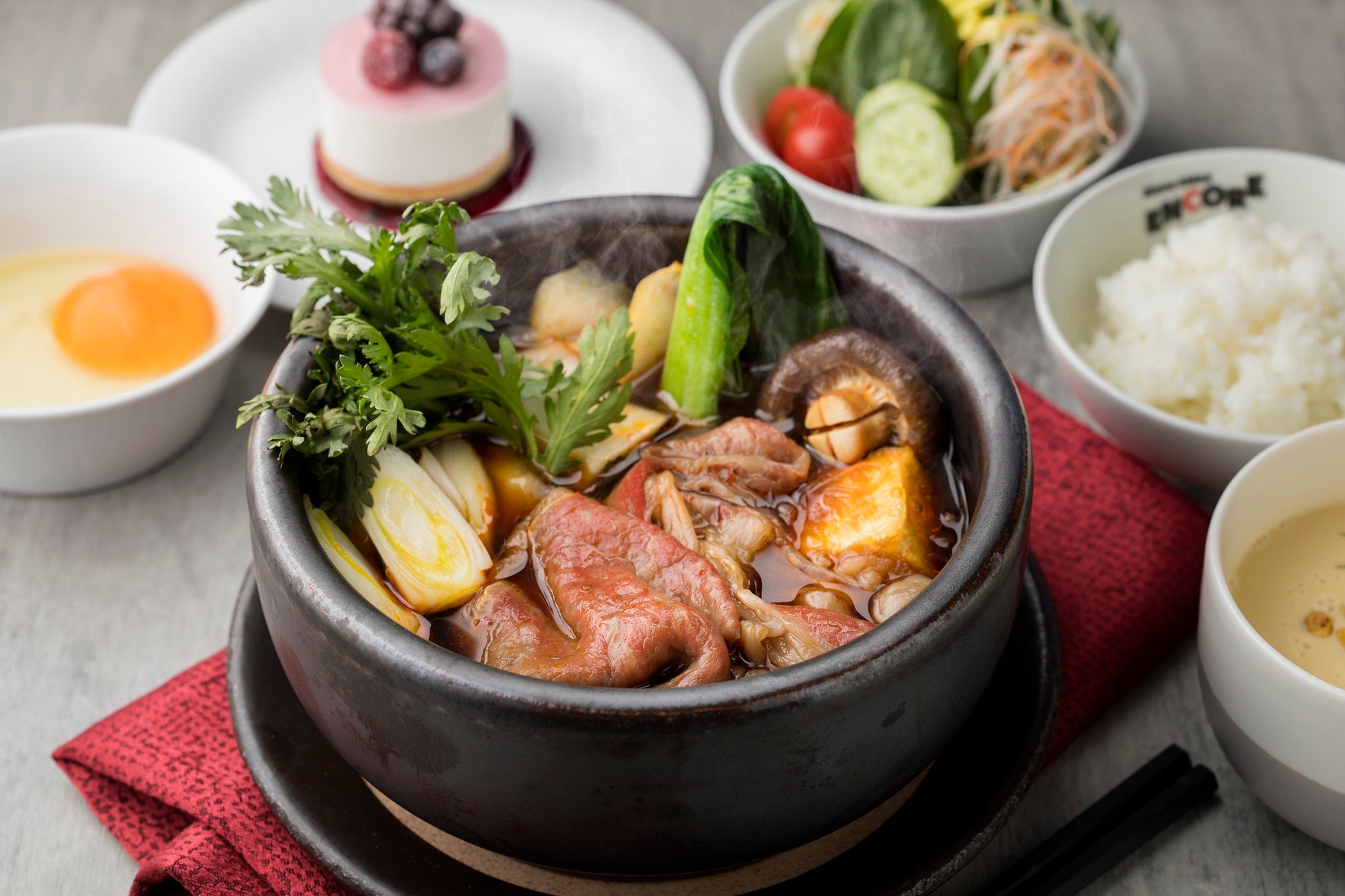 「食の東急ホテルズ」の洋食と横浜の特色である中華をアレンジした新感覚のカジュアルレストラン、ビストロチャイナ「ENCORE」で、「鹿児島黒牛」を横浜ならではの牛鍋スタイルで提供。その他、黒豚、ブリ、黒酢などを使用した鹿児島尽くしのメニューや鹿児島本格焼酎を使ったカクテルなどを提供いたします。