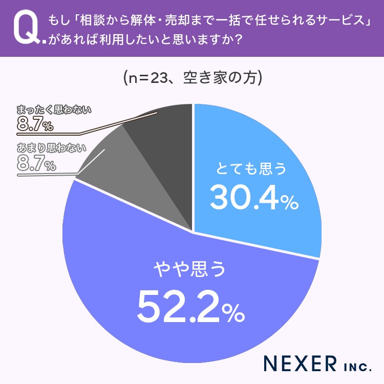 最後に、もし「相談から解体・売却まで一括で任せられるサービス」があれば利用したいかどうかを聞いてみました。