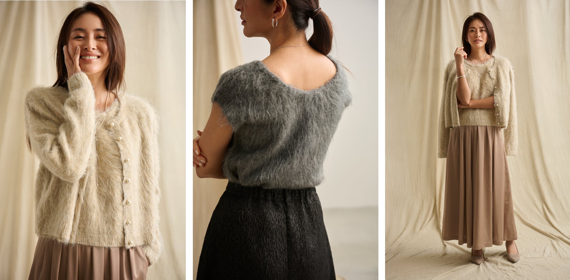 今回は、8月に引き続き今年2回目となる人気スタイリスト・福田麻琴さんとのコラボレーションの実現となり、テーマは「大人のホリデー服」。ブラックを基調に、大人女性がホリデーシーズンのパーティーなど特別なシーンで着たくなるホリデームード溢れる11アイテムが完成しました。