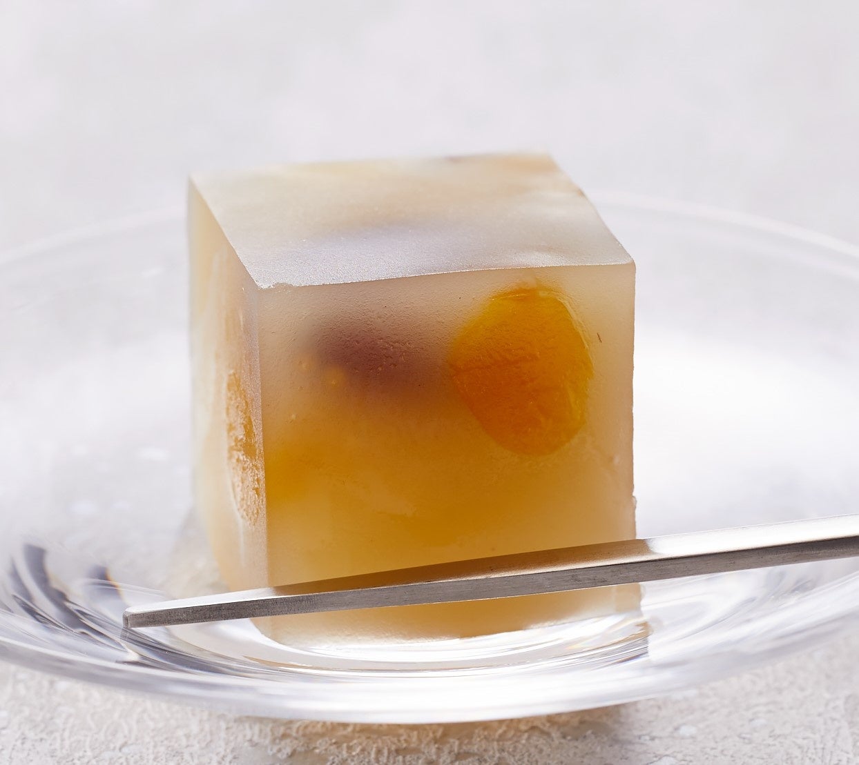 キューブ型ようかん「パビリオン」の最新作は、これからあたたかくなる季節にぴったりの「ひやしあめかん」です。昔から大阪の夏の定番として愛されてきた『ひやしあめ』をイメージした、生姜の爽やかさとやさしい甘さが特徴のようかん。大阪本家 駿河屋に伝わる生姜ようかんのレシピを元に、甘さ控えめにアレンジしました。ぜひよく冷やしてお召し上がりください。