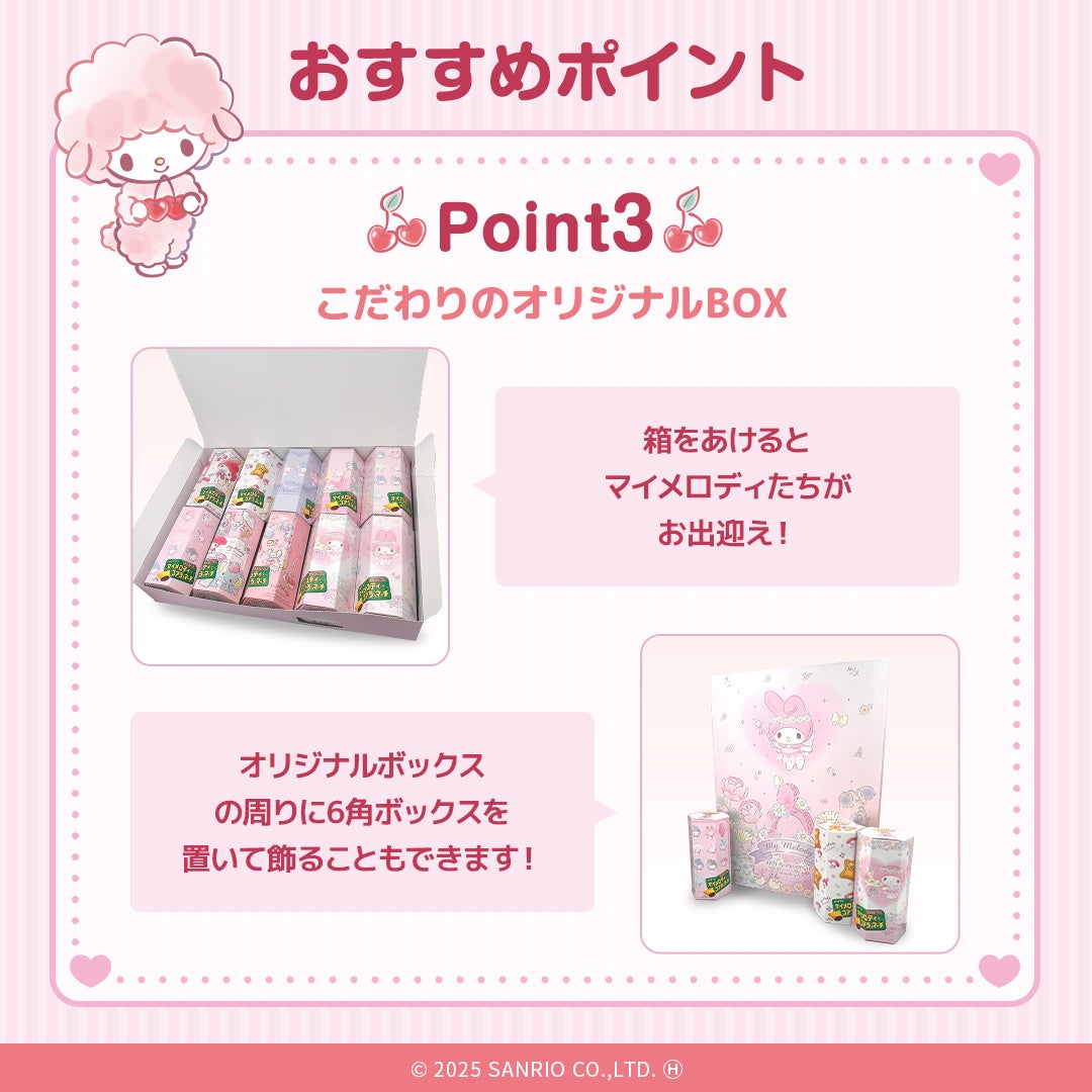 マイメロディのビジュアルが入った特別デザインのパッケージは全10種類(販売単位は10個1セット)