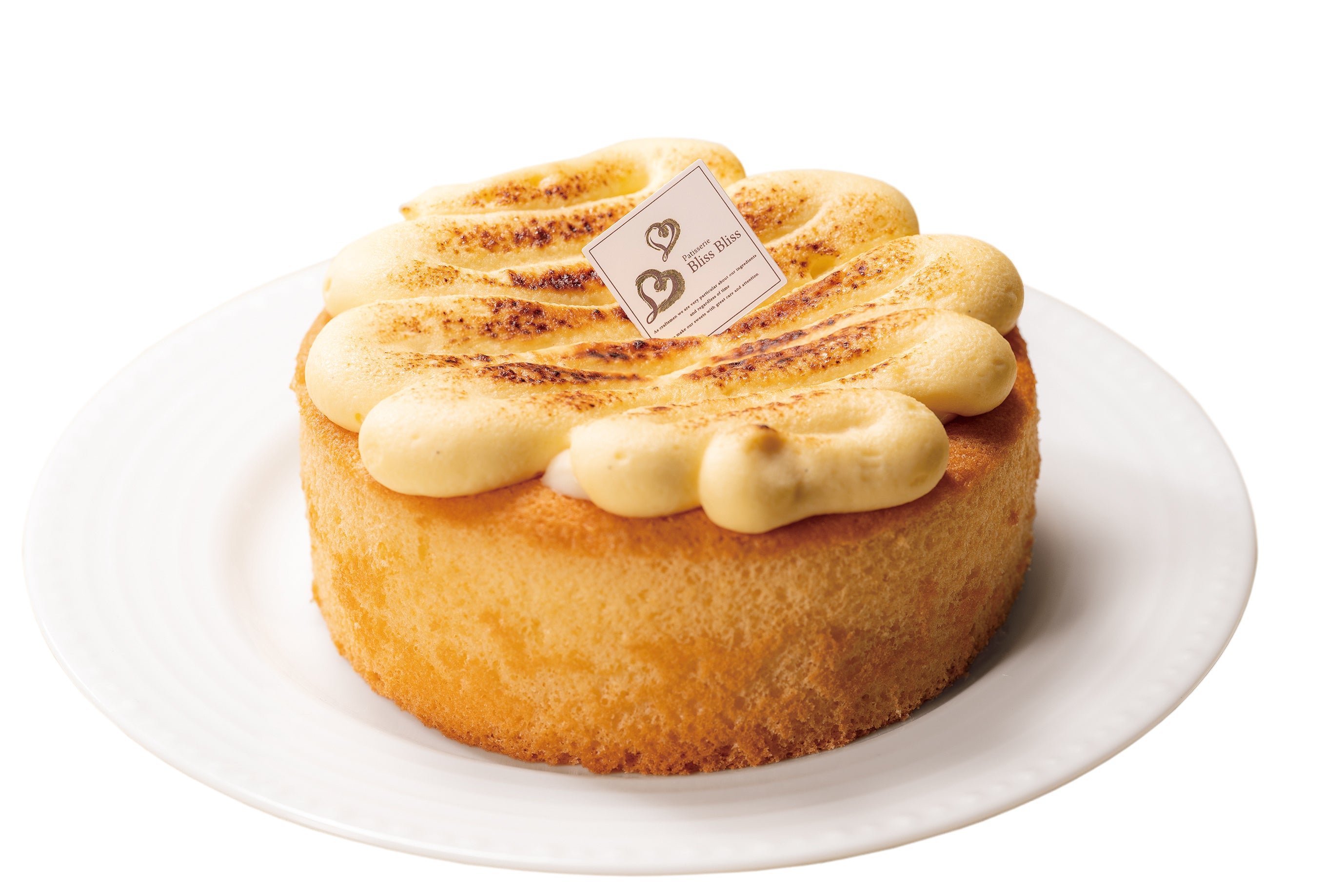 しっとり柔らかいスフレのような食感のケーキにたっぷりカスタードクリームをのせ、ブリュレ風に焼き上げた“冷めてものびる”新食感チーズケーキ。