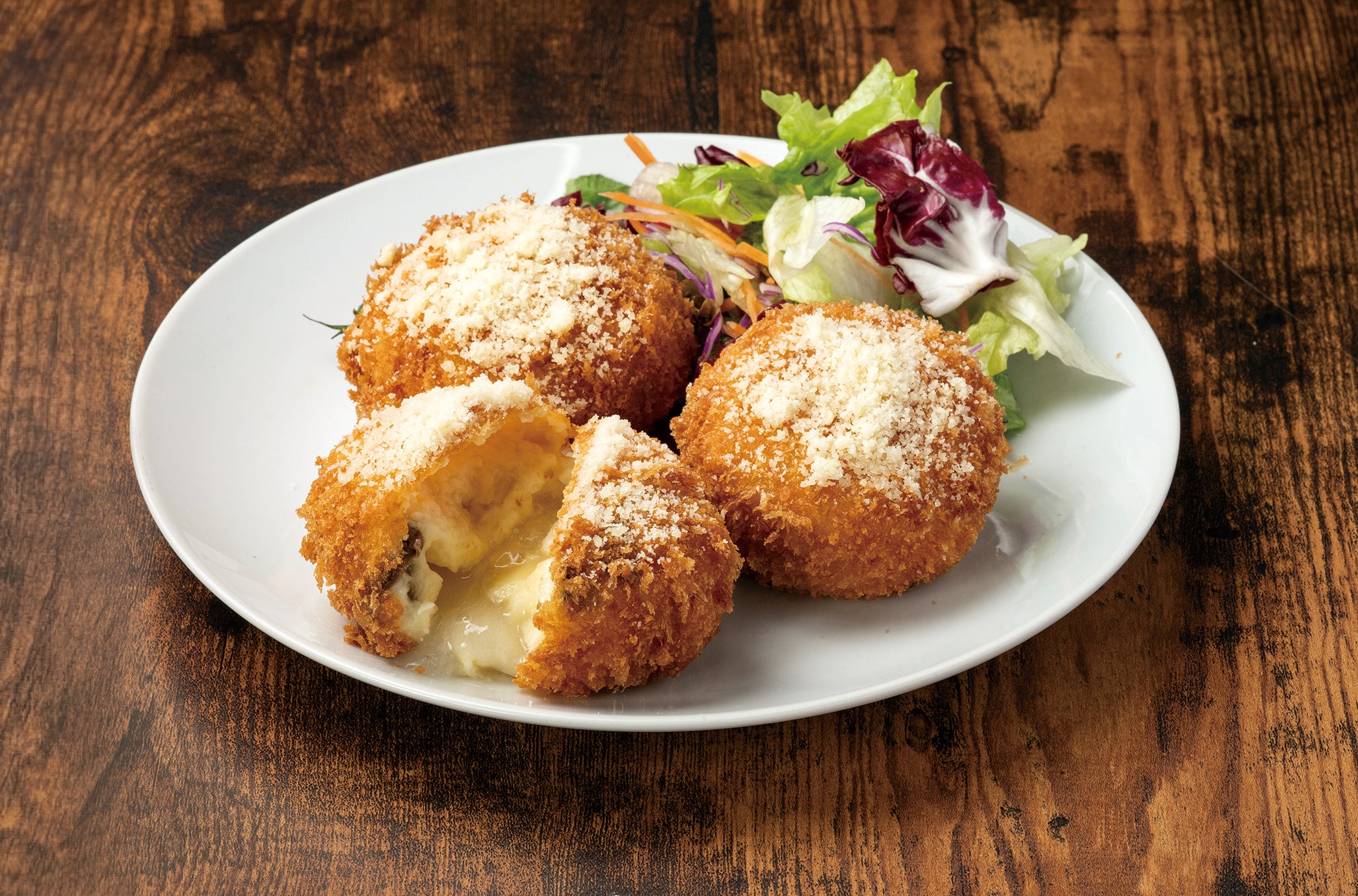 十勝幕別産の北海黄金でカマンベールチーズを包み込んだ風味豊かなコロッケ。求肥入りでもちもち食感!