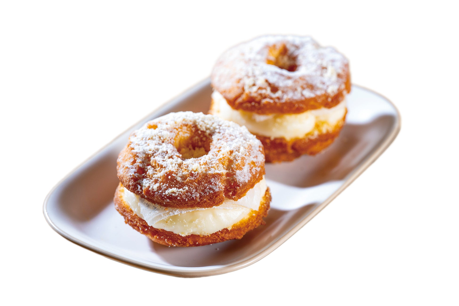 北海道産小麦を使用したやわらかしっとり食感が特徴の手作りドーナツに、求肥とチーズクリームを挟み込みました!