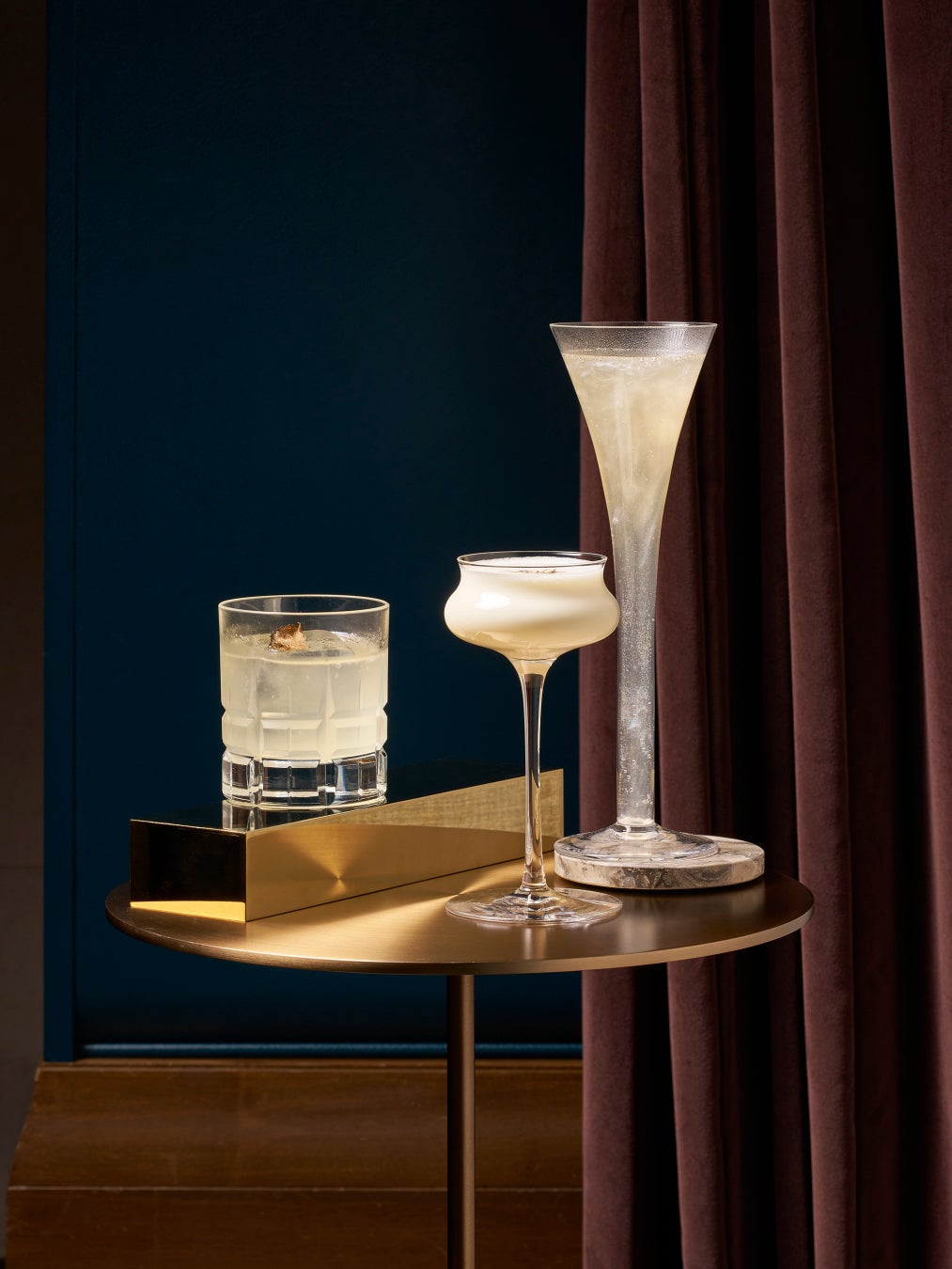 夜の静寂に包まれる頃、グラスの中で静かに煌めくフェスティブカクテルの数々。ピーチとシャンパンの繊細な調和にパールパウダーが舞い、光を纏うような「アダマス レディー」。ホワイトチョコレートとトリュフが香る「ノーブル ホワイト」、ペアと黒トリュフハニーが織りなす「エトワール ノアール」など、それぞれが異なる表情で、華やかな夜の一幕を描き出します。グラスに映したダイヤモンドの煌めきと余韻に包まれる優雅な時間をお過ごしください。