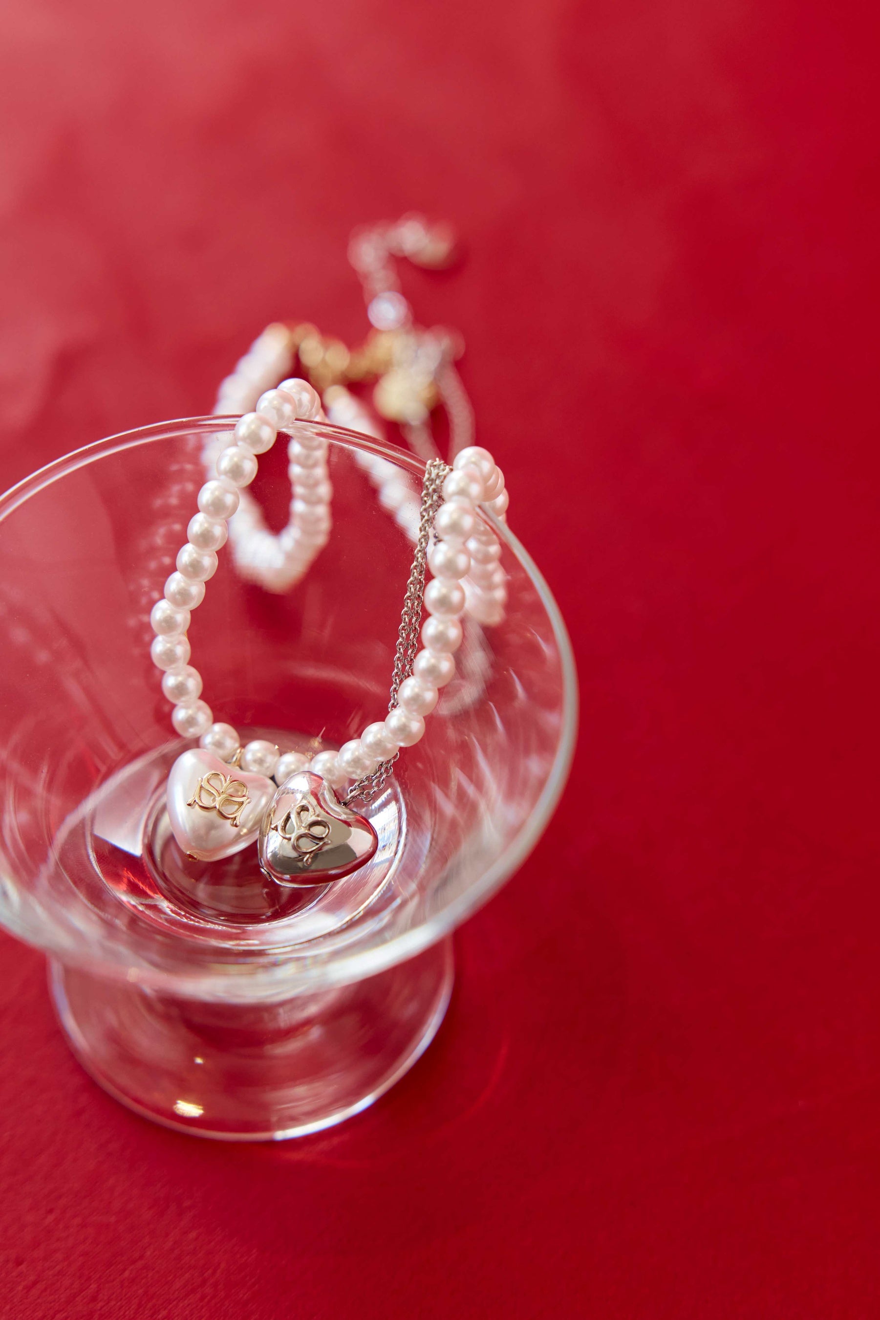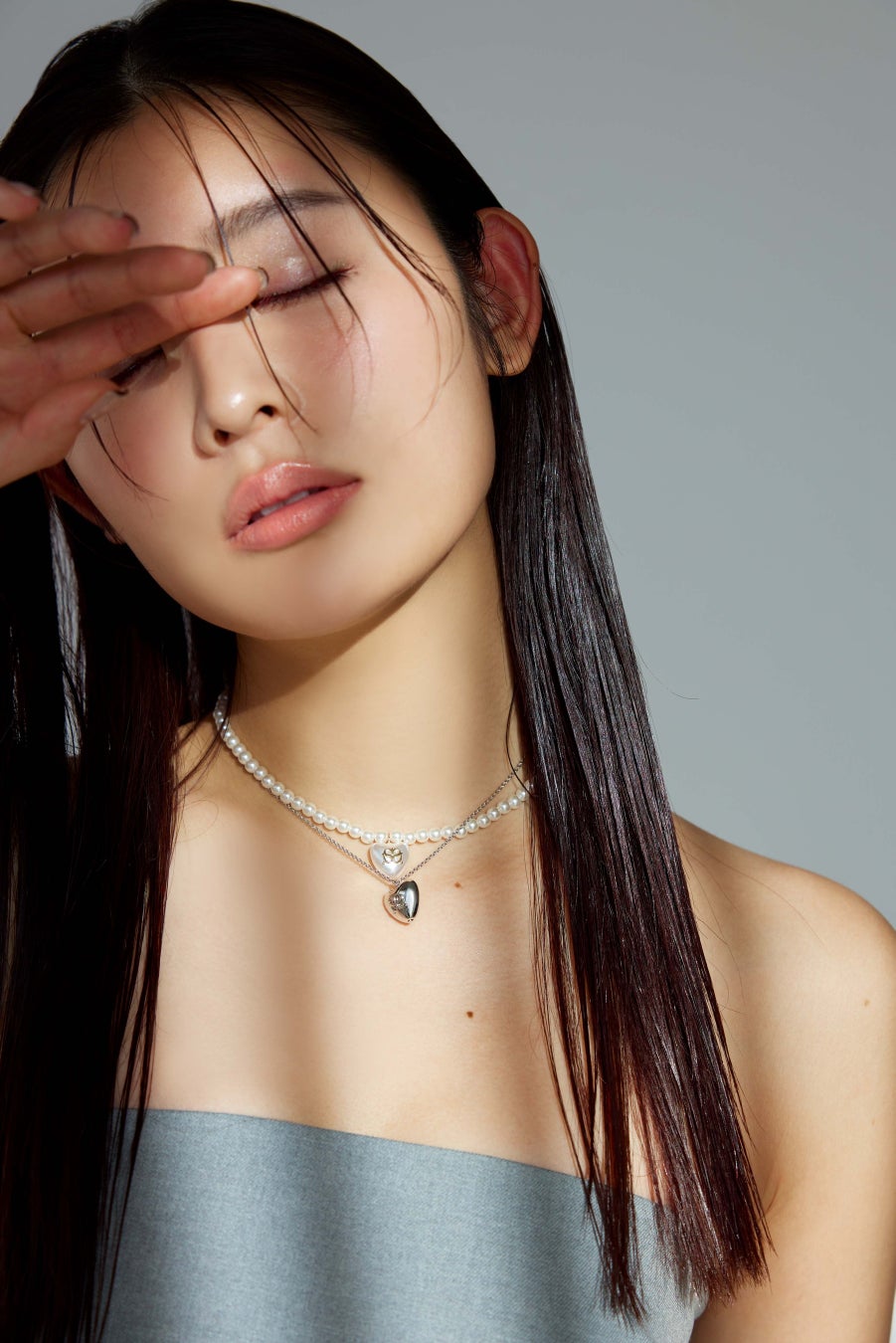 シルバーは華奢なチェーンで大人っぽく、パールはパールチェーンで存在感あるネックレスに仕上げました。