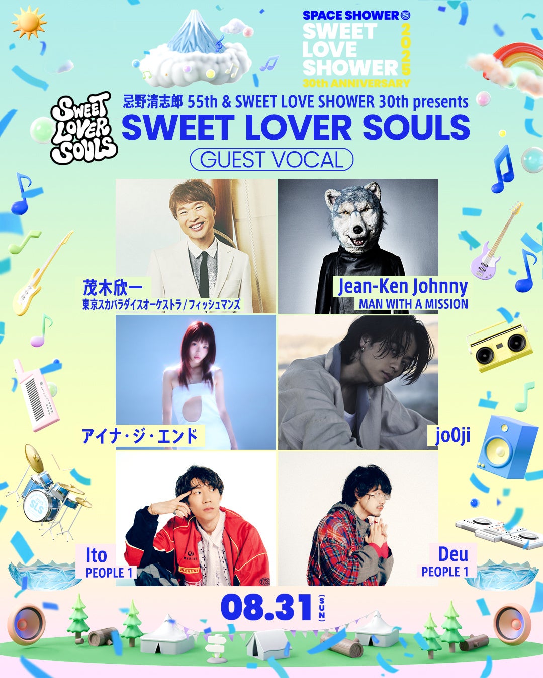 そんなアニバーサリーイヤー開催の今年、新たな試みに挑む。日比谷野音時代のSWEET LOVE SHOWERに過去4回出演し、スペースシャワーTV開局当初から縁が深く“KING OF ROCK”の異名と共に日本のロック史にその名を刻んだ忌野清志郎のデビュー55周年とSWEET LOVE SHOWER 開催30周年を記念した、ラブシャ初のトリビュート企画「SWEET LOVER SOULS」が始動。“キヨシロー”をリスペクトするアーティストたちが素晴らしい楽曲の数々とそのソウルを歌いつなぐべく、世代を超えたスペシャルトリビュートバンド・ SWEET LOVER SOULSとして、ギター:Rei、ドラム:ジェットセイヤ(go!go!vanillas)、ベース:休日課長(礼賛、DADARAY、ゲスの極み乙女、ichikoro)、キーボード:渡 和久(風味堂)、サックス:梅津和時が集結。
