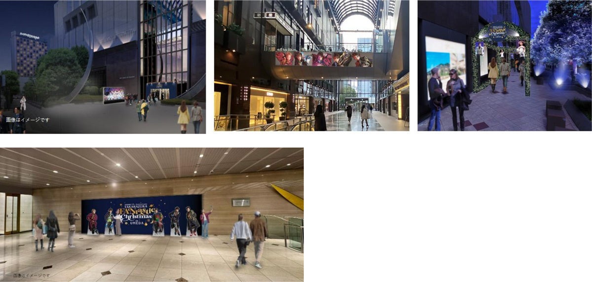 アプローズタワーエントランスには宝塚歌劇のイメージ映像を大スクリーンで放映。館内には、宝塚歌劇の機関誌「歌劇」のポート撮影を手掛ける写真家レスリー・キー氏によるスペシャルタペストリーや全身パネルの展示のほか、色とりどりのイルミネーションでデコレーションされたTAKARAZUKA FANtastic Christmasロードが登場。