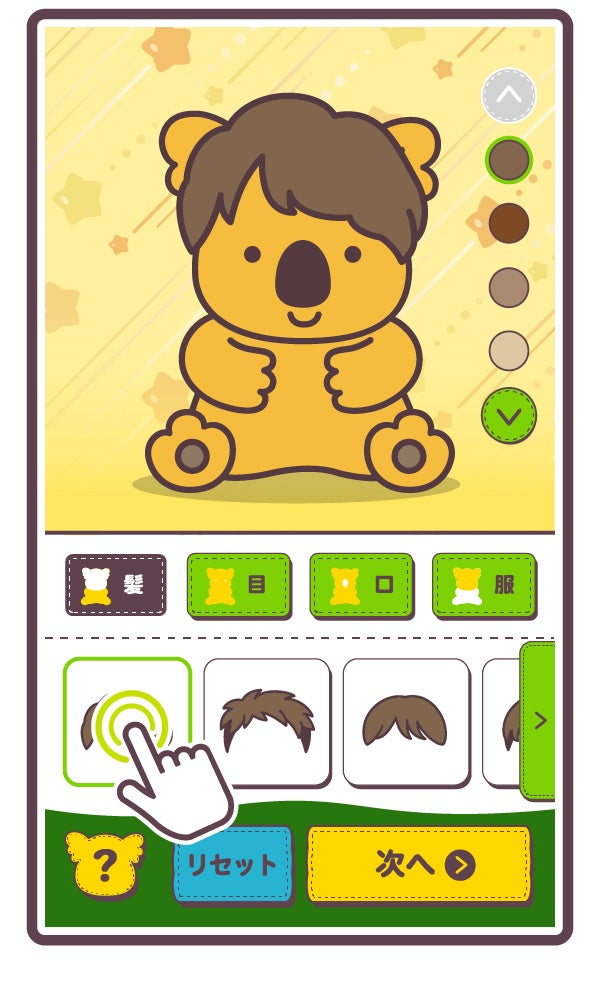 ジェネレーターを使用し、髪や目、衣装など身体のパーツを選んで推しコアラを作成。