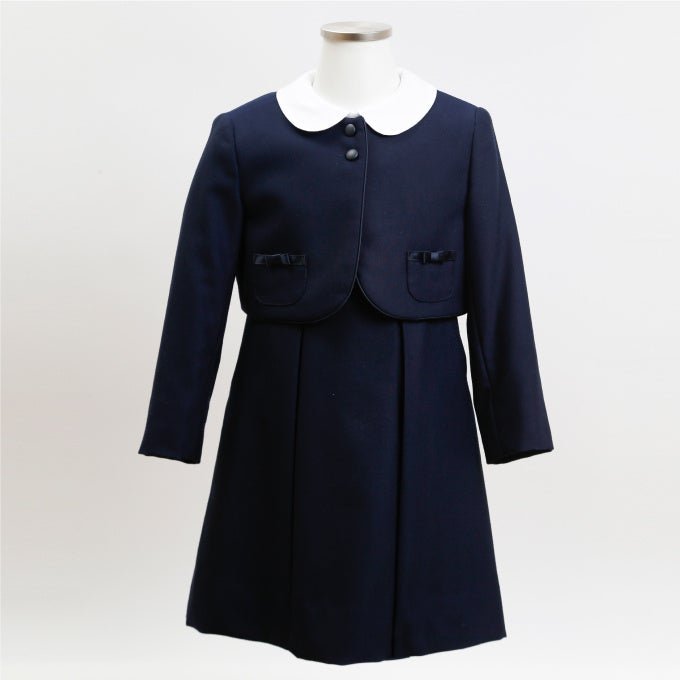 <プリミッシュ>ジャケット 53,900円(ネイビー/3~15号)ワンピース 47,300円(ネイビー/5~15号)