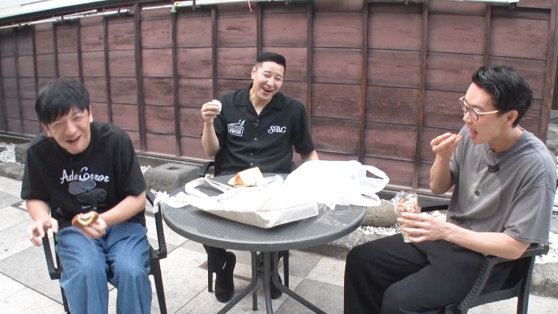今回は、俳優の笠松将と3人でのドライブ旅です。笠松は、2人が大好きなドラマ『ガンニバル』(ディズニープラス)に出演していた人気俳優。オープニングに登場した彼に向井は「ここに来てくれるようなランクの人じゃない」「(仕事)断りな?」と注意し、笑いを誘います。