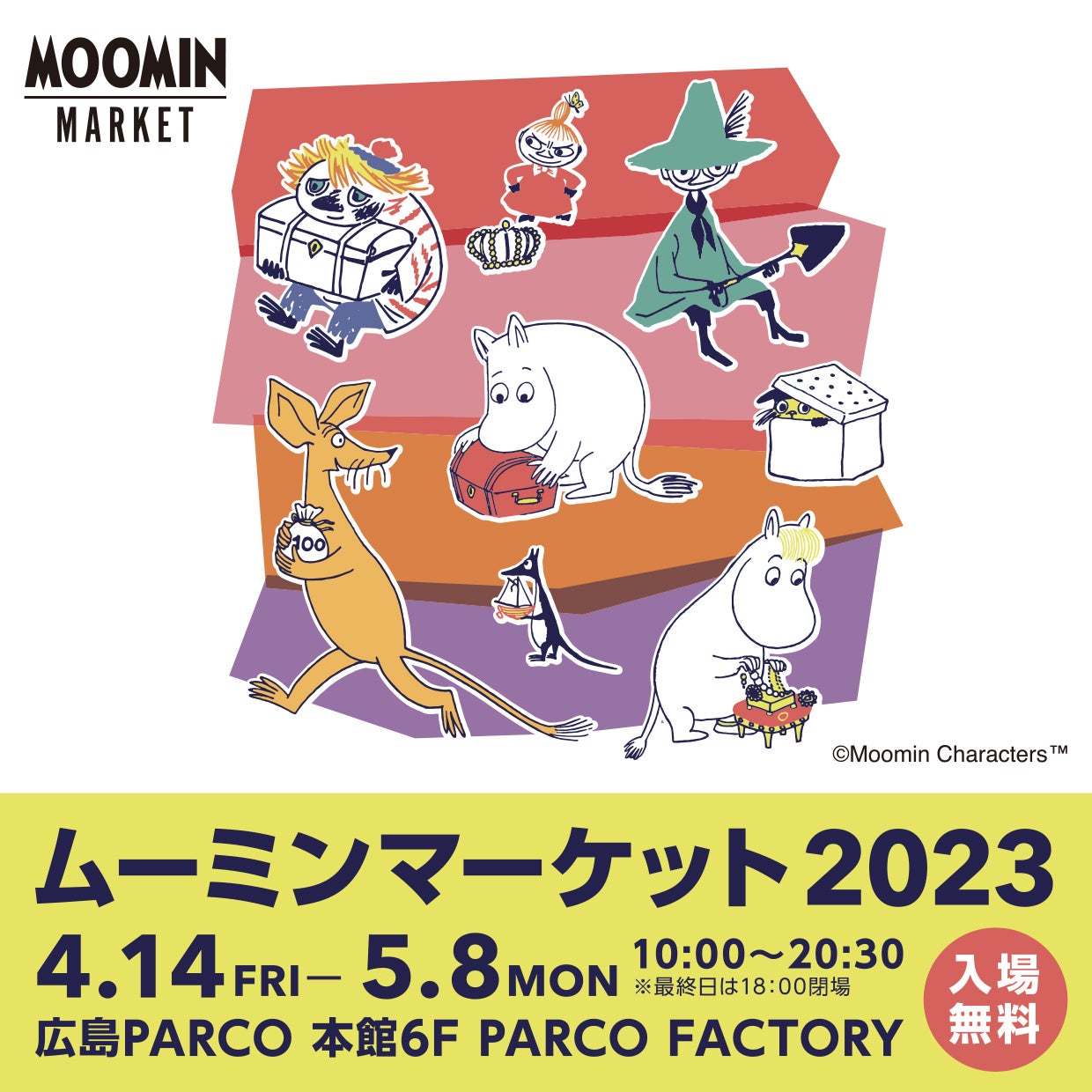 広島PARCOでは、2023年4月14日(金)~2023年5月8日(月)の期間、フィンランド生まれの人気キャラクター「ムーミン」のグッズ販売イベント「ムーミンマーケット2023」を開催いたします。