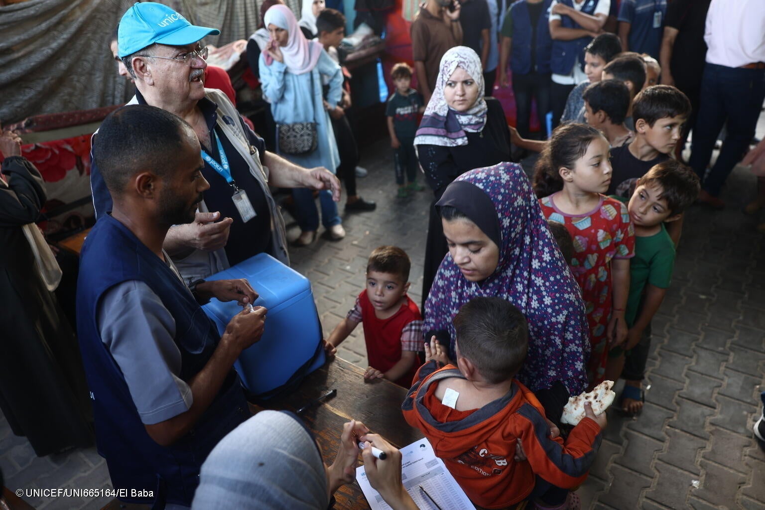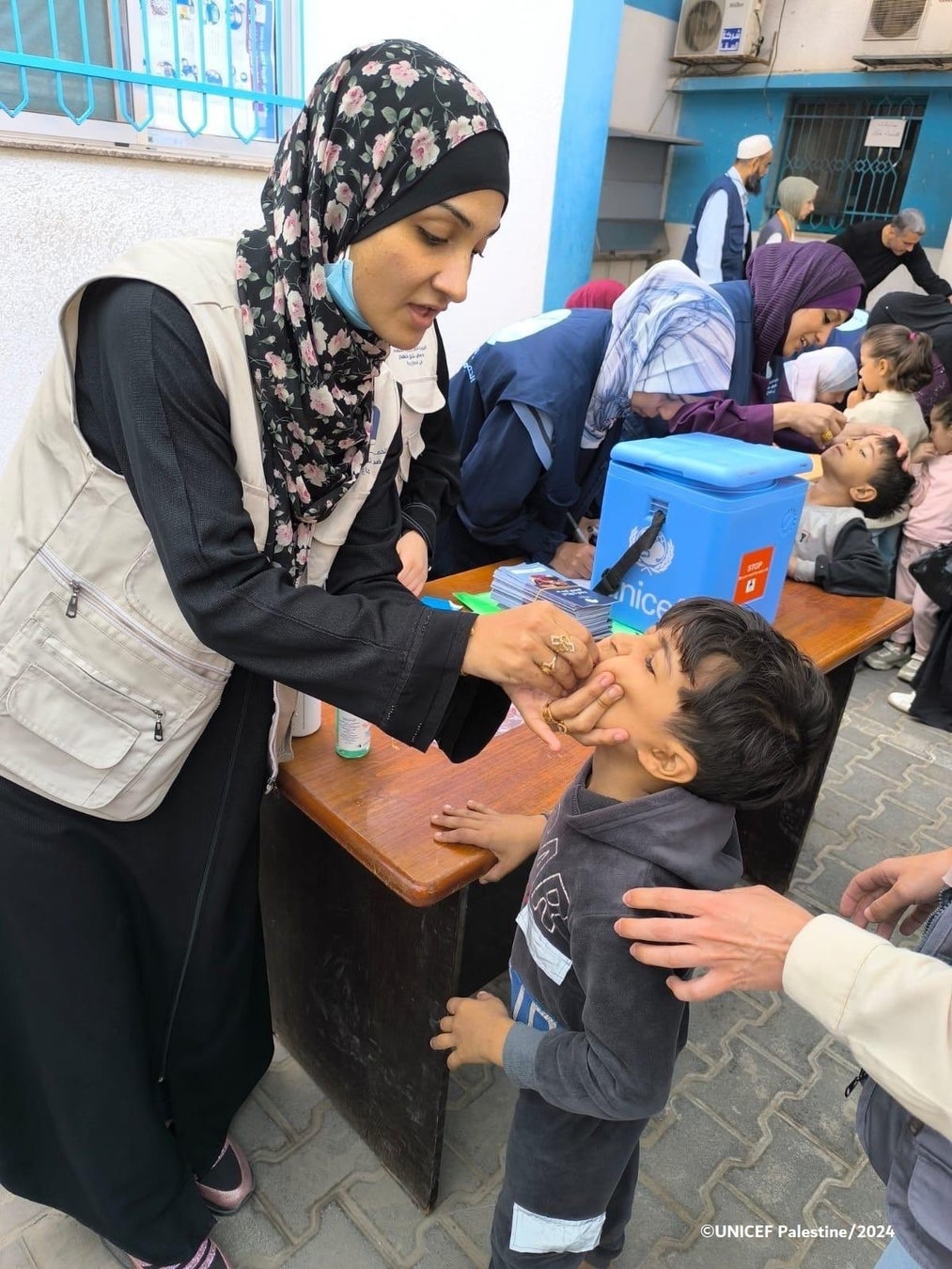 パレスチナ保健省がユニセフ、WHO、UNRWAおよびその他のパートナーと協力して実施しているポリオワクチン集団予防接種は、2024年7月16日にガザ地区で確認されたポリオの集団発生を食い止め、ポリオウイルスのさらなる感染拡大を防ぐための緊急対策の一環です。