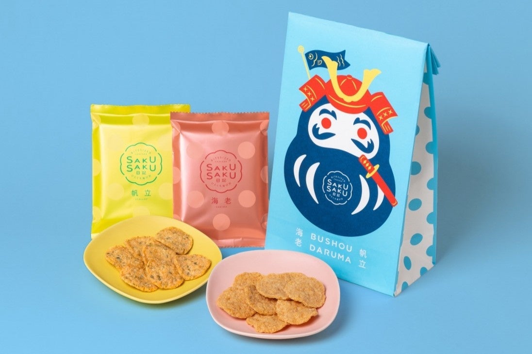 〈坂角総本舗〉さくさく日記 武将だるま(海老×4袋、帆立×4袋) 864円