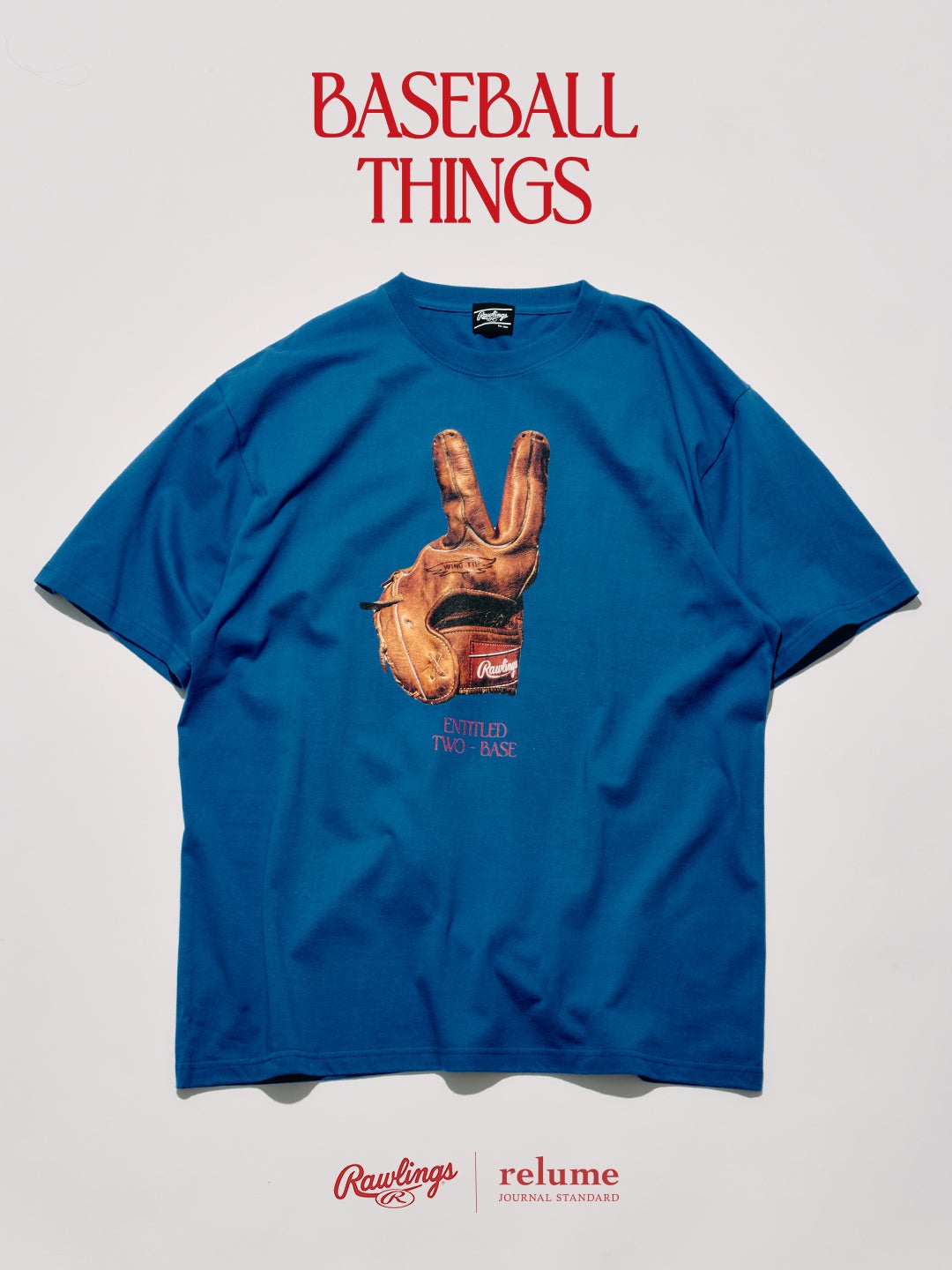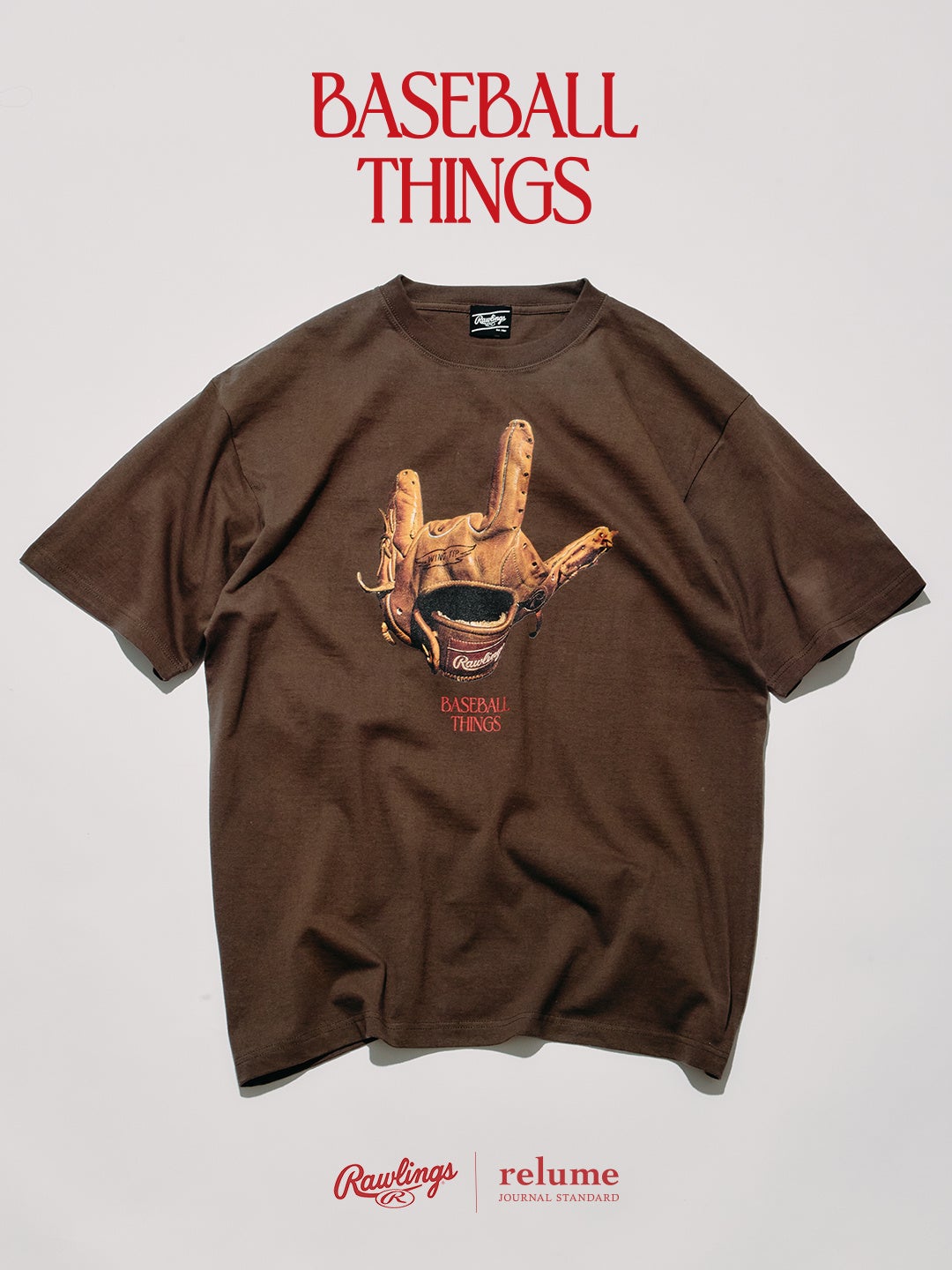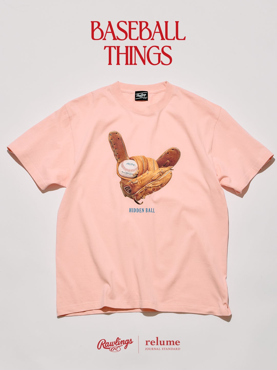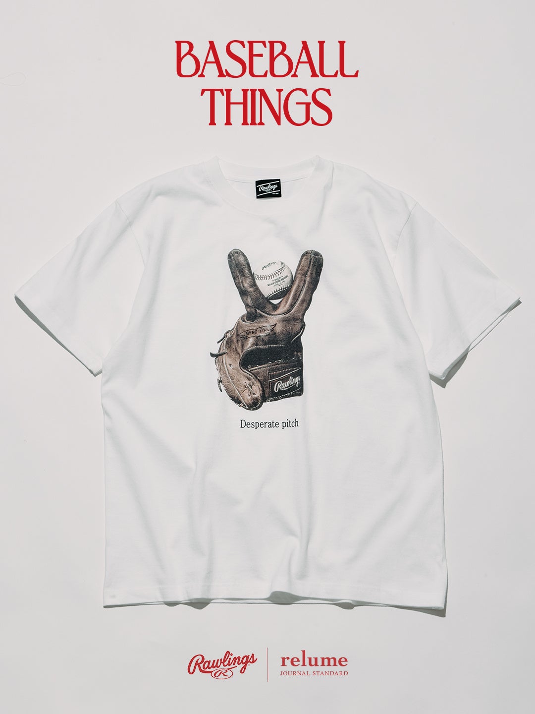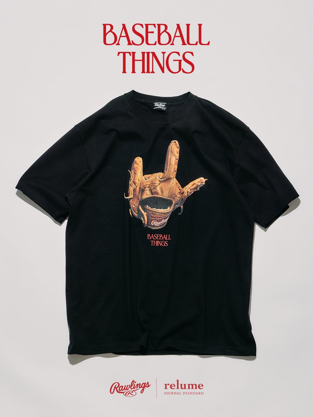 BASEBALLシーズンの開幕にあわせて展開される本コレクション「BASEBALL THINGS」では、Tシャツとグラブキーホルダーをラインナップ。アメリカの老舗BASEBALLブランド、ローリングス®の名作グラブ「XPG3」を軸に、BASEBALLの背景にあるカルチャーやユーモアをファッションへと落とし込んだ。