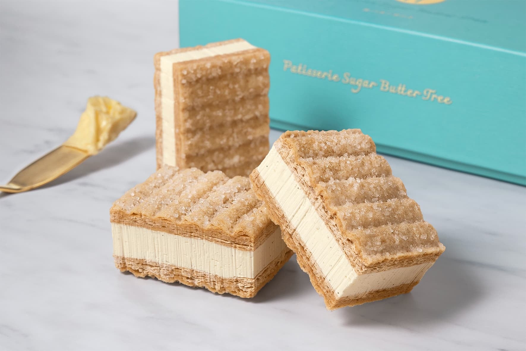 芳醇バタークリームを香ばしいシュガーバター生地にたっぷりはさんで召し上がれ。