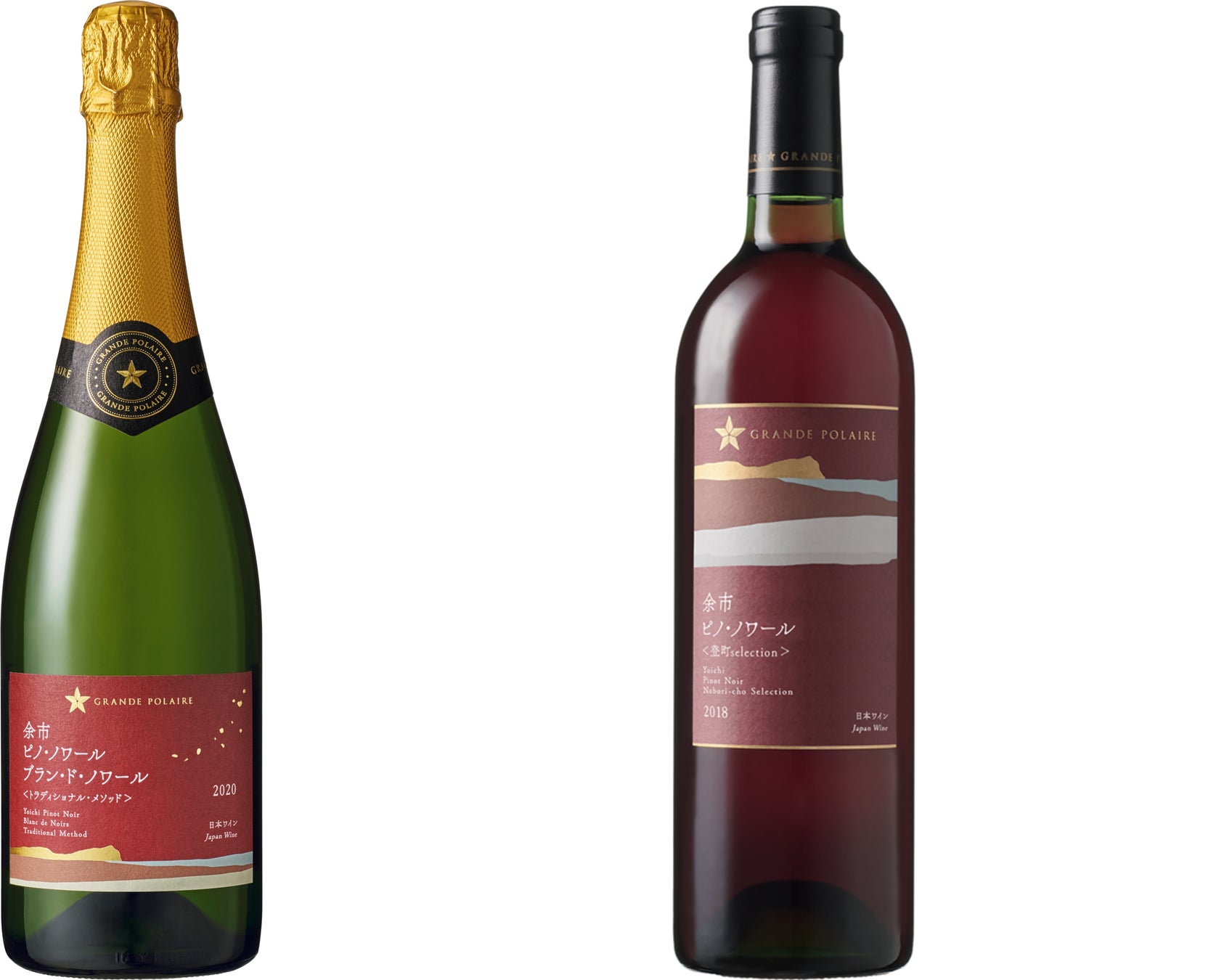 「グランポレール 余市ピノ・ノワール ブラン・ド・ノワール<トラディショナル・メゾット>2020」「グランポレール 余市ピノ・ノワール<登町selection>2018」数量限定発売