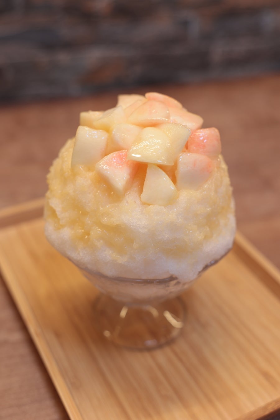 一杯に完熟の桃を約2玉分使用の人気No.1のかき氷。