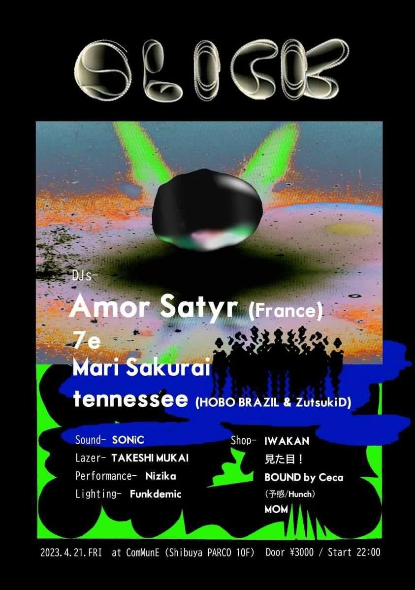 今回はレジデントの Mari Sakurai と 7e に加え、ベース、トライバル、ジューク、バイレファンキなど様々な領域を MIX する初来日のフランス人 DJ/プロデューサーのAmor Satyr をゲストに迎えて開催。
