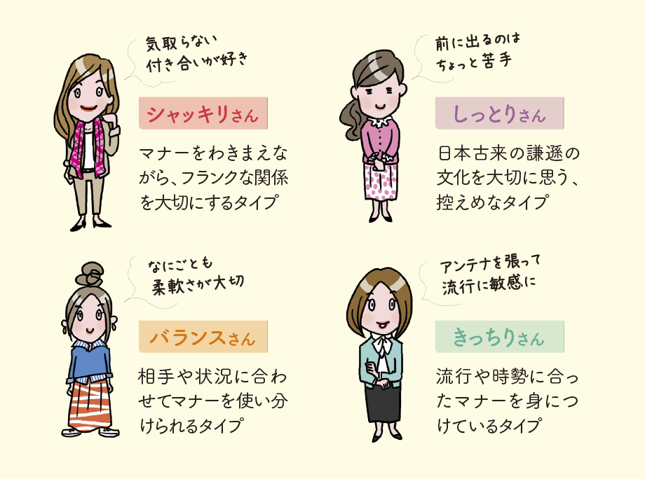 自分のマナーをチェックし、あこがれるタイプに近づくことを目指します。