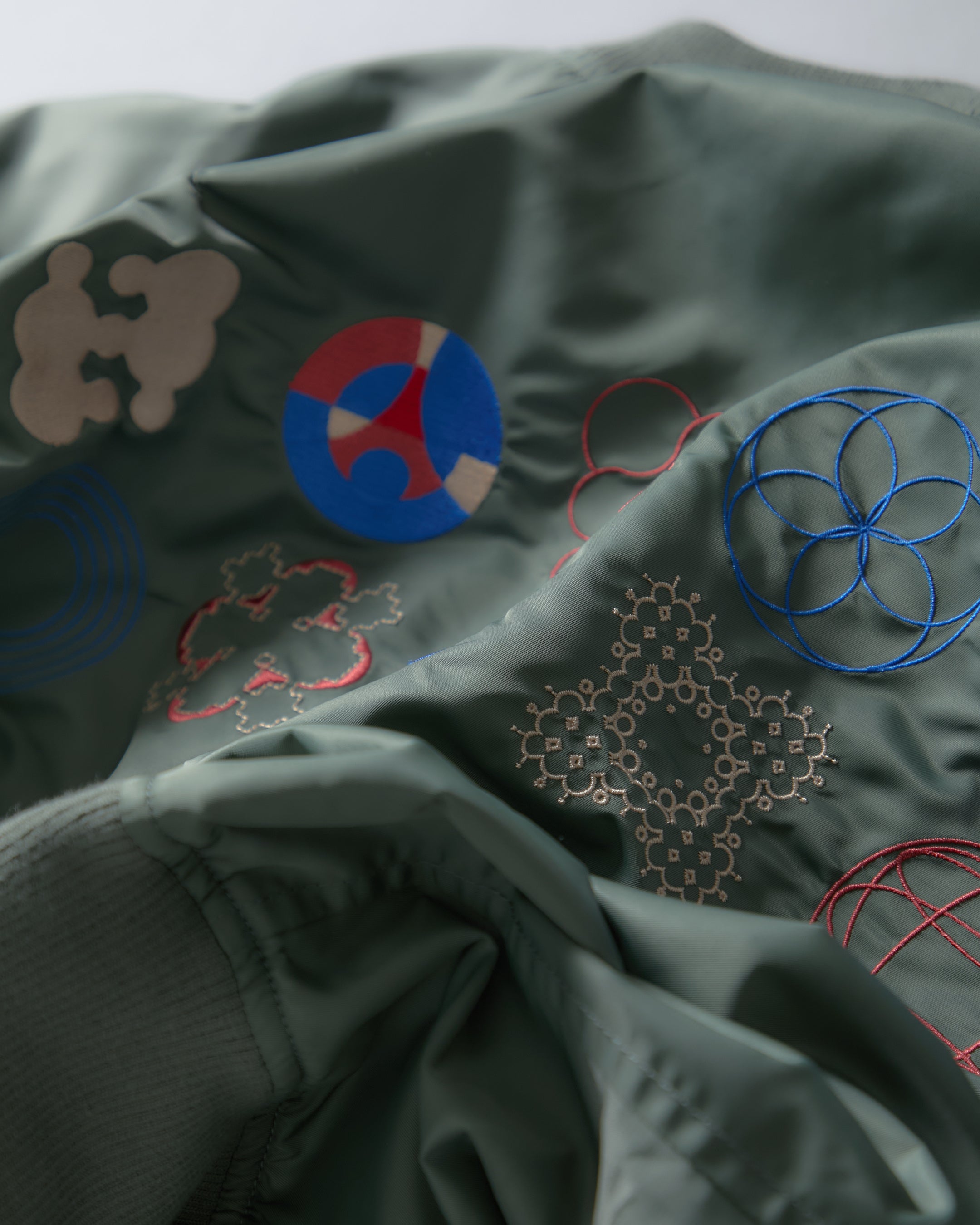 • アートワーク: 背面や胸元、袖に施された緻密な刺繍は、金田氏による再構築の軌跡。多色使いでありながら、不思議と調和するそのバランスは、グラフィックの魔術師たる真骨頂です。