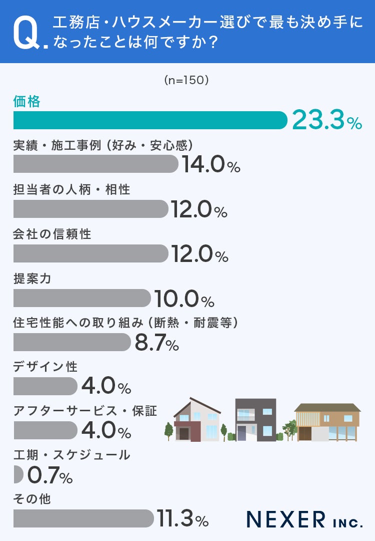 ■23.3%が、工務店・ハウスメーカー選びの決め手は「価格」と回答