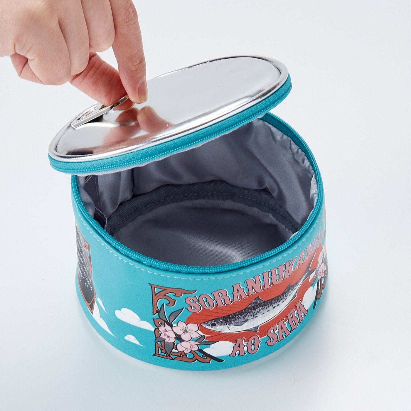 フェリシモミュージアム部より太宰治と中原中也の出会いのエピソードをモチーフにしたレトロでかわいい「“空に浮かんだ青鯖”の缶詰風ポーチ」が登場