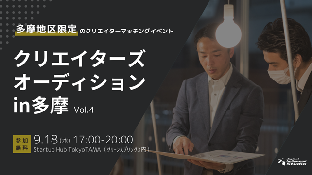 また今回の『クリエイターズオーディションin多摩』は、東京都の多摩地区において起業や創業を支援するTOKYO創業ステーションTAMAとの共同開催となっており、Startup Hub Tokyo TAMAイベントスペースが本イベントの会場となっております。