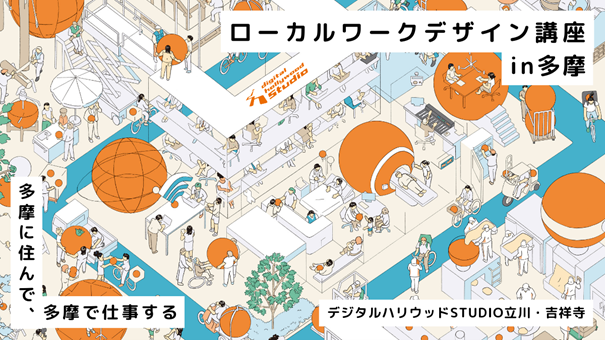 デジタルハリウッドでは「多摩に住んで、多摩で仕事する」をテーマに、Webデザインや動画制作を学習した後に2か月間で学ぶ講座『ローカルワークデザイン講座in多摩』を、デジタルハリウッドSTUDIO立川・吉祥寺限定で開講しております。この講座は多摩エリアを中心に発信を続ける、けやき出版とのコラボ講座となっており、多摩エリアの地域性やクリエイターとしてのスキルとマインドを学ぶ内容となっております。本講座の最終成果発表をジョブマッチングイベント『クリエイターズオーディションin多摩』として、企業の皆様をお迎えし、受講生によるプレゼンテーションと懇親会を行います。