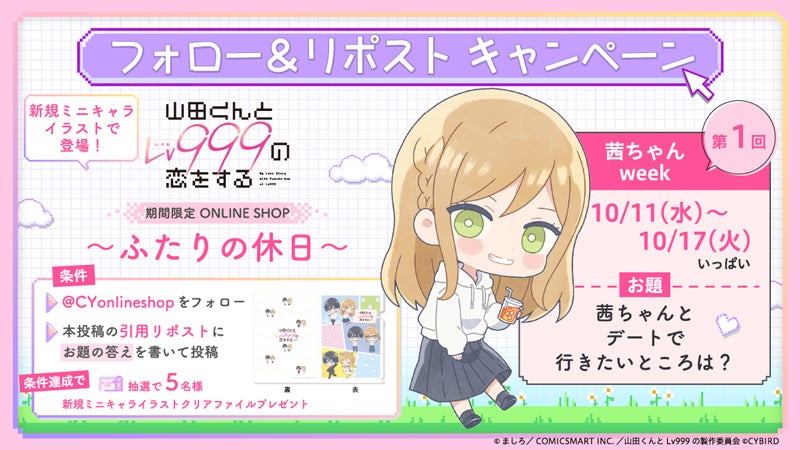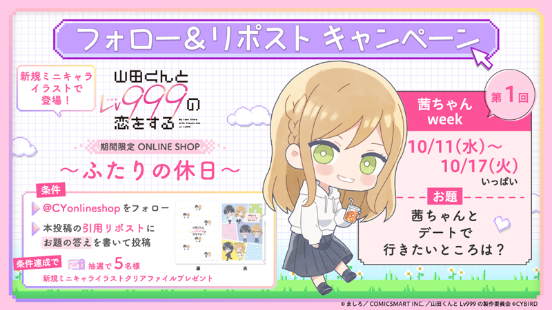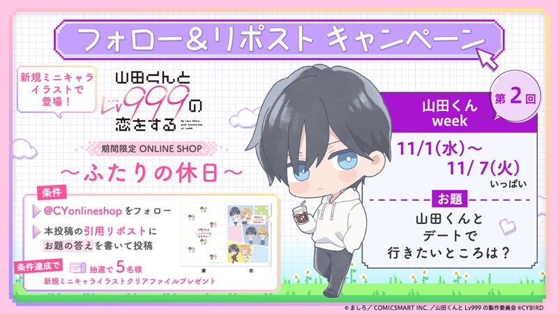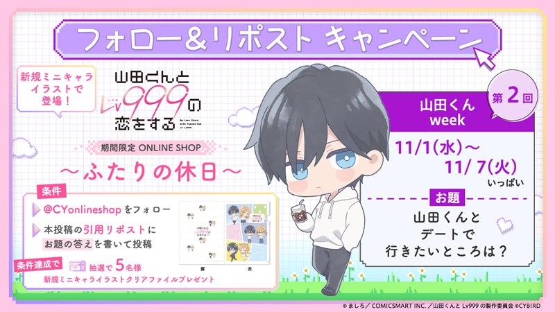 『山田くんとLv999の恋をする期間限定ONLINE SHOP ~ふたりの休日~』フォロー&リポストキャンペーン第1回