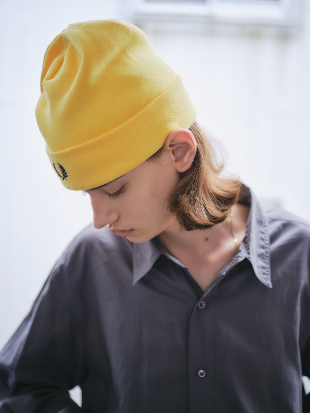 ニットキャップは、インラインでは秋冬にのみ展開されるウール混素材のモデルをベースに、コットン素材へと置き換えて製作。