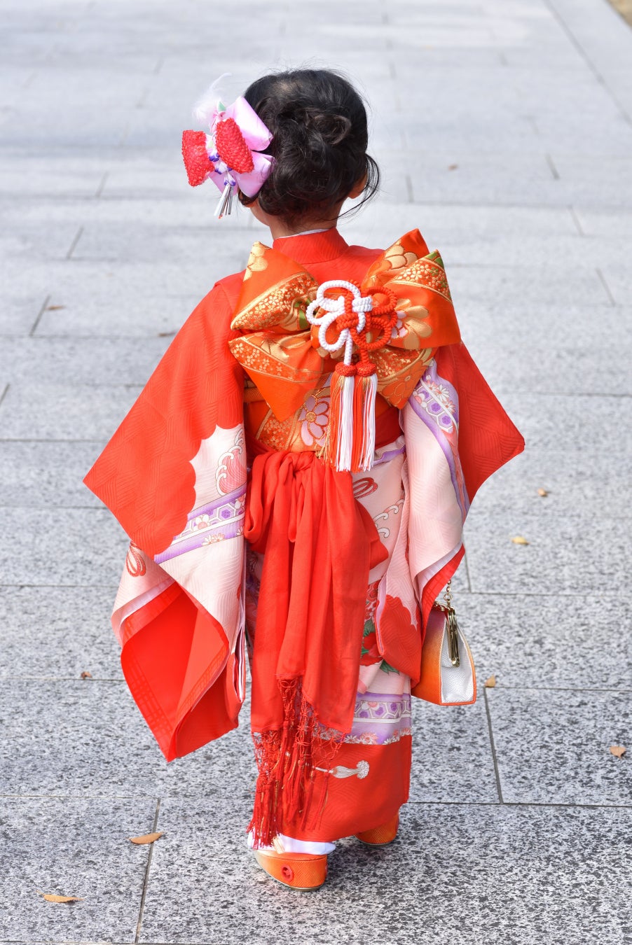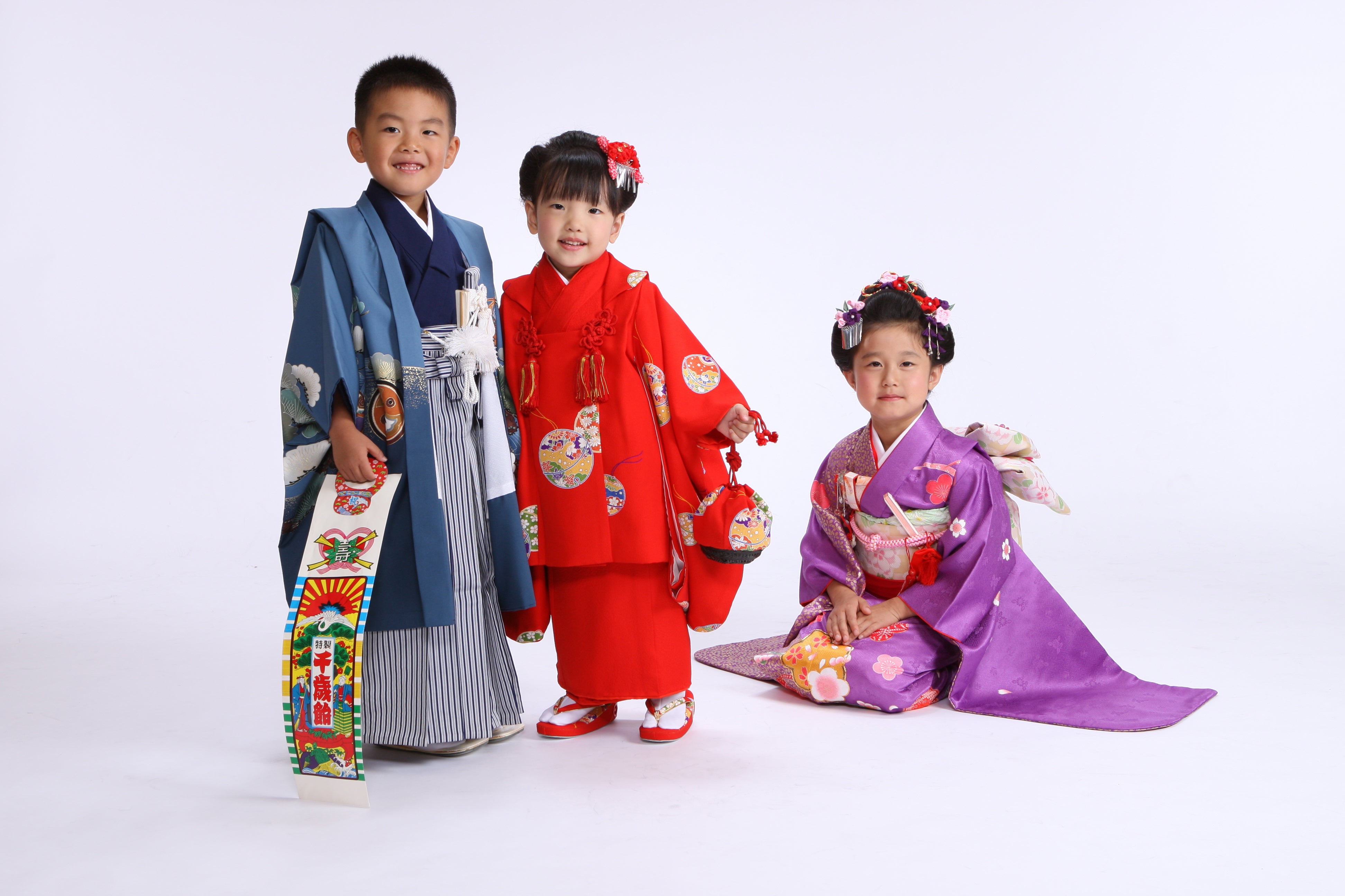 「七五三」は、江戸時代、わが子の成長を祝う通過儀礼として武家社会で行われていた風習が七五三のはじまりと言われています。3歳に髪を伸ばし始める「髪置き」、5歳に初めて袴を着る「袴着」、7歳に大人と同じ帯を締める「帯解き」の3つの儀式が一緒になり、今の七五三スタイルになりました。