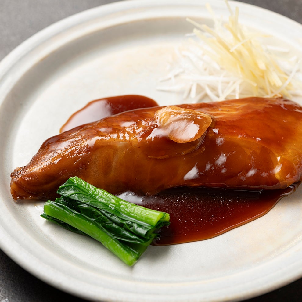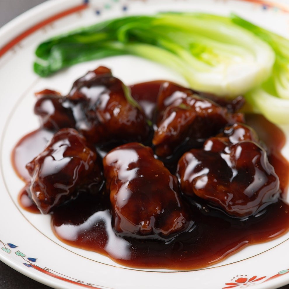 黒醋の濃厚なコクと酸味、豚肉のやわらかさが際立つ菰田シェフ監修の酢豚。具も大きく、食べごたえもあります。コクのある黒醋の甘みと酸味が、やわらかな豚肉と見事にマッチした逸品です。