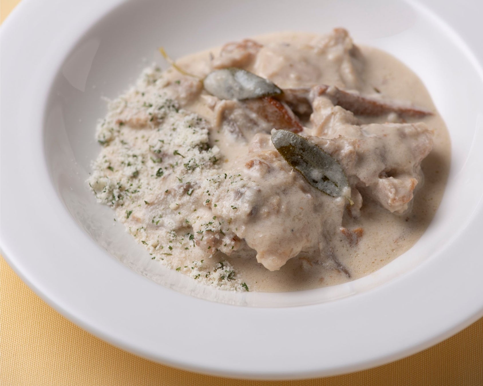 〈ラクリッチ〉セージバター香るジロール茸と若鶏のマスカルポーネソース煮込み