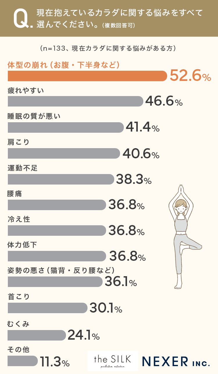 株式会社NEXER・女性のカラダの悩みとピラティスへの期待に関する調査