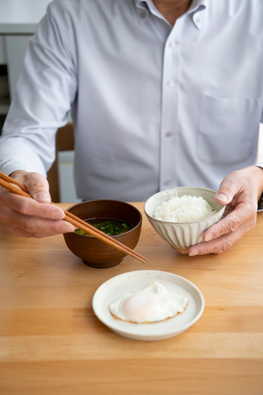 ◇朝は卵料理と野菜たっぷりのみそ汁、ごはんのバランス良好メニュー
