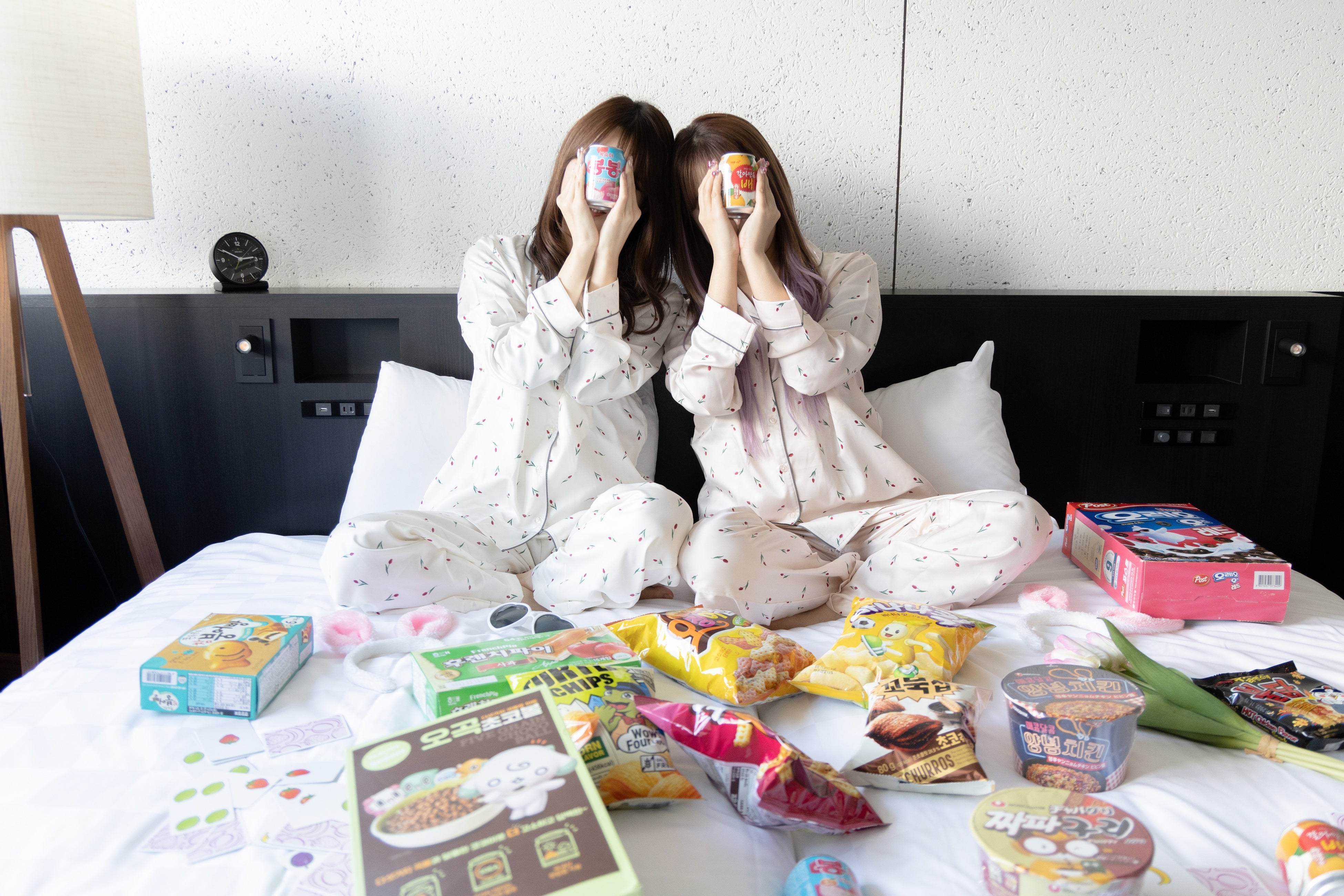 プラン特典として、“韓国っぽ”パジャマをお渡しします。おそろいのパジャマで夜更かしをお楽しみください。使用後はお持ち帰りいただけます。