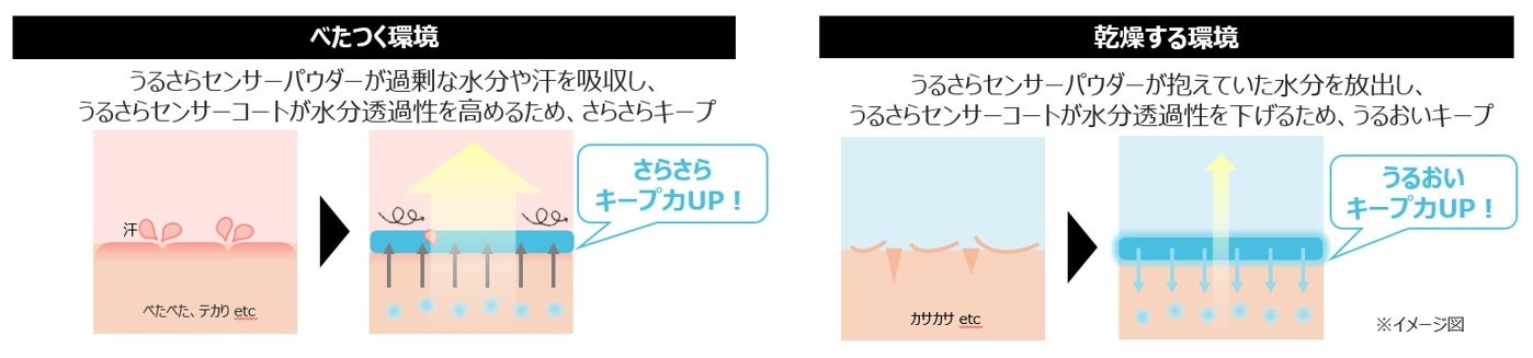 ◆過剰な皮脂・水分を吸着する「うるさらセンサーパウダー」と「うるさらセンサーコート」を搭載し、テカリとカサつきをダブルで防ぎます。