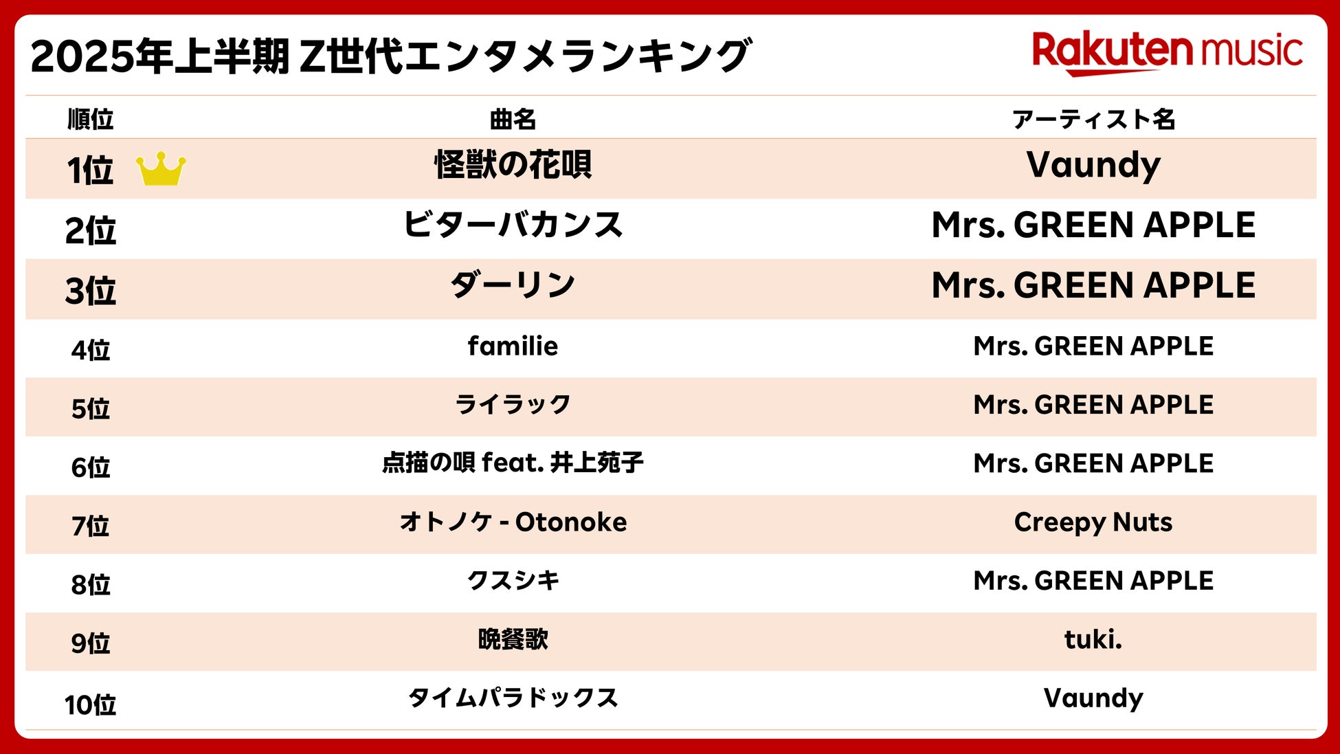 ・「Rakuten Music」2025年 上半期ランキングURL: https://music.rakuten.co.jp/news/award/seasonal/2025/first-half/