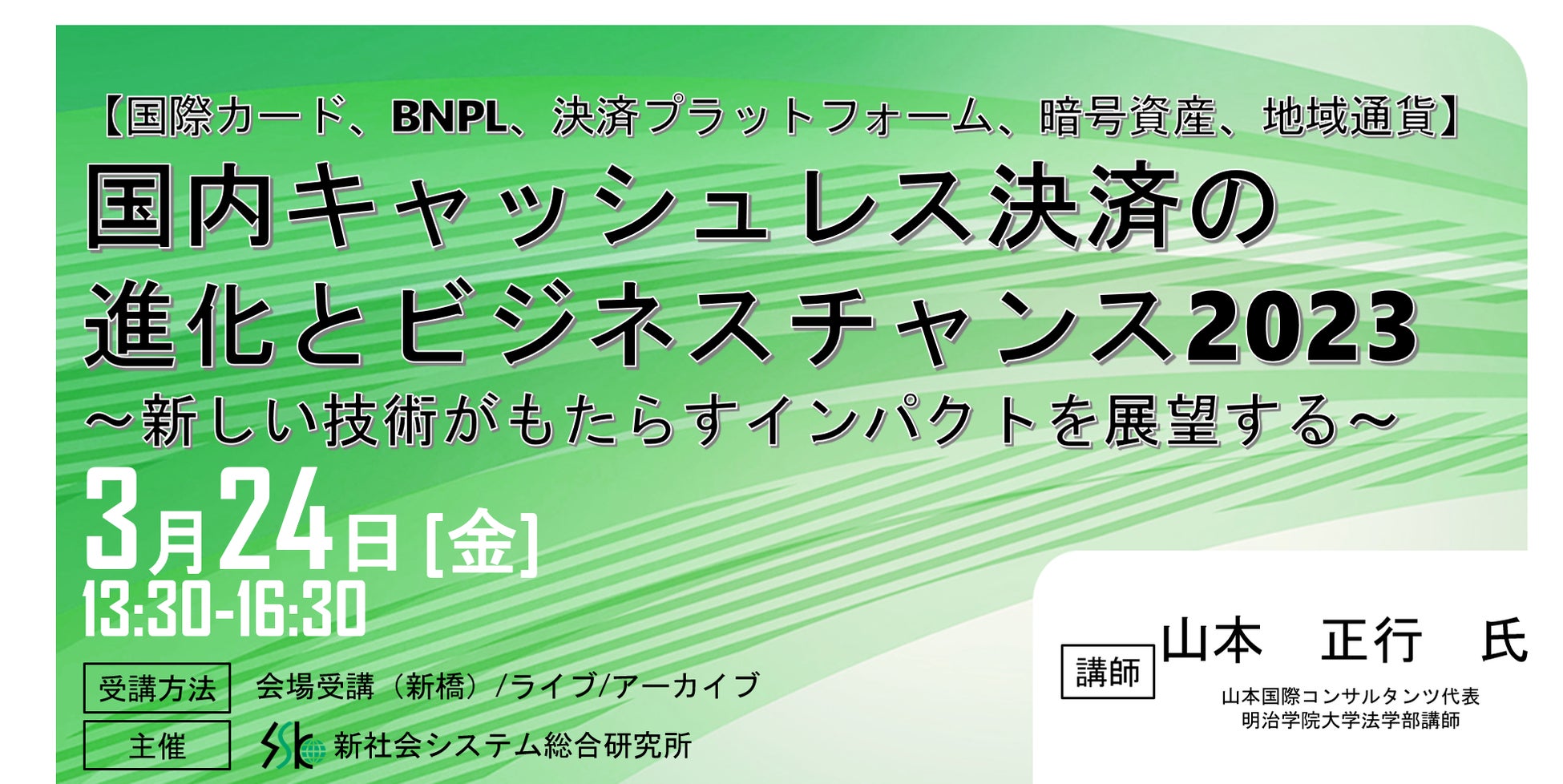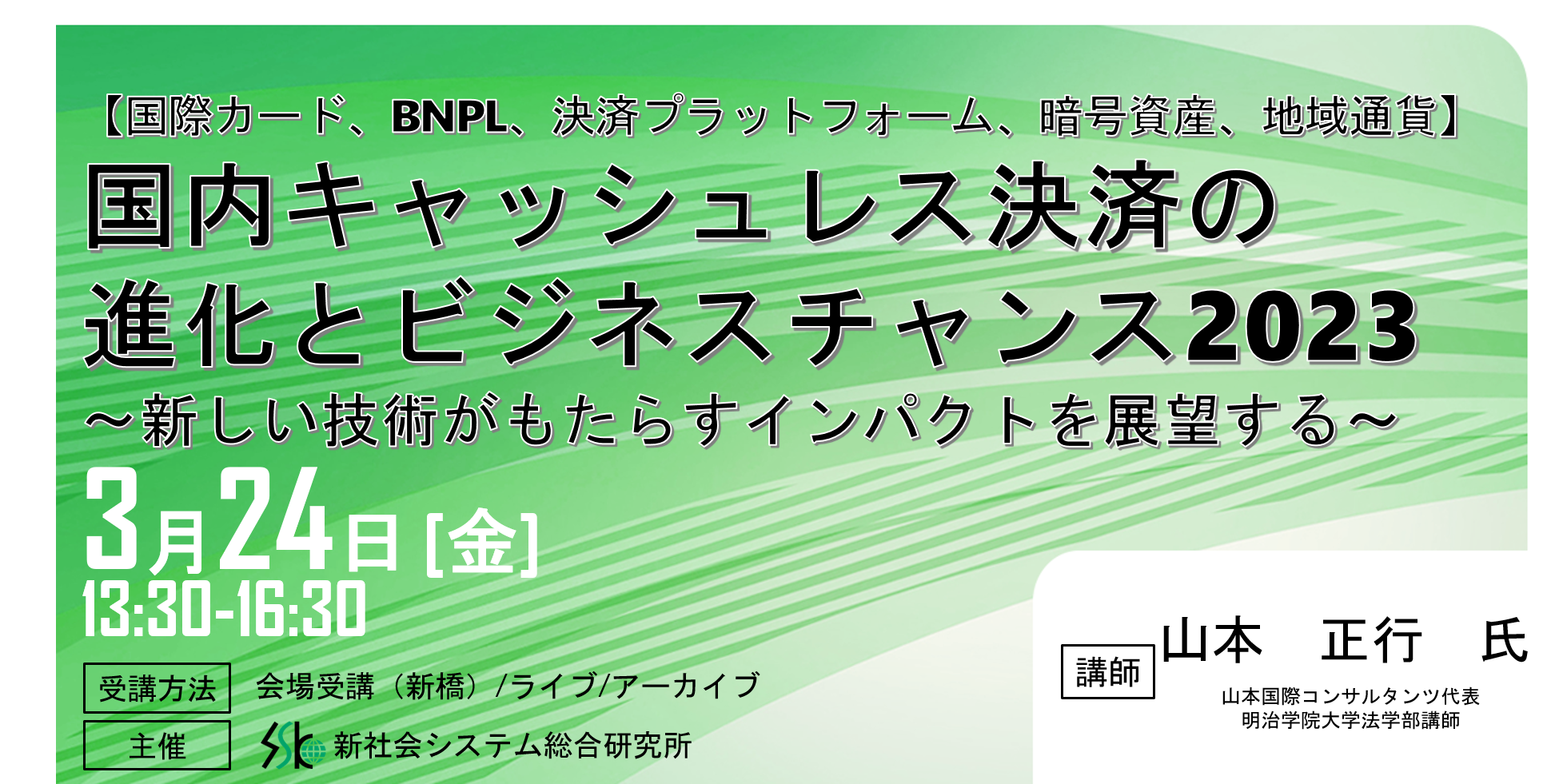 「キャッシュレス決済の進化とビジネスチャンス」と題して、山本国際コンサルタンツ代表/明治学院大学法学部講師 山本 正行氏によるセミナーを2023年3月24日(金)に開催!!