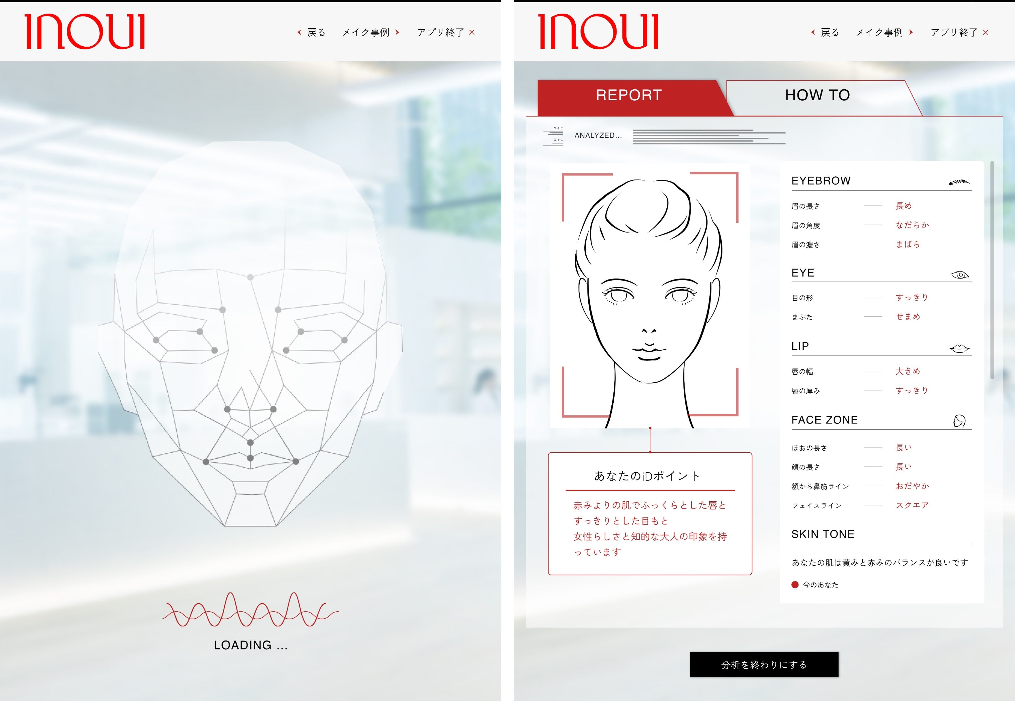 「顔の骨格やパーツの3D解析」×「資生堂独自の顔立ち分析」×「パーソナルカラー分析」を融合したインウイのオリジナルコンテンツをもとに、お客さまの魅力のポイントやニーズを捉えつつカウンセリングを行います。