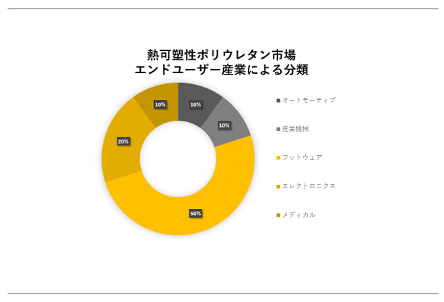 この市場を牽引しているのは、耐滑性や耐摩耗性といった独自の特性や利点を持つ熱可塑性ポリウレタンのフットウェア産業における利用拡大です。熱可塑性ポリウレタンは幅広い機械的特性を持ち、どのような過酷な状況でも耐久性があります。TPUは、運動靴やハイキングシューズなどのアウトソールに広く使用されています。TPUアウトソールは耐久性があり、軽量で、さまざまな路面で優れたトラクションを発揮します。Journal of Engineering Materials and Technologyに掲載された研究では、フットウェア用途に使用されるTPUベースの材料の機械的特性を調査しています。この研究では、TPUはその優れた機械的特性と加工性から、フットウェア産業で使用される有な材料であると結論付けています。