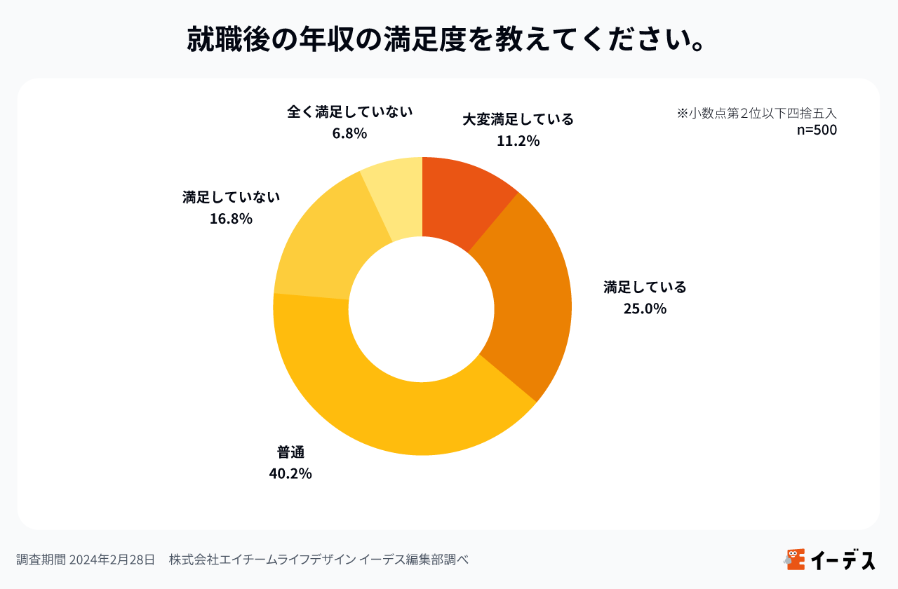 就職後の年収満足度調査で「大変満足している」「満足している」人の割合は計36.2%