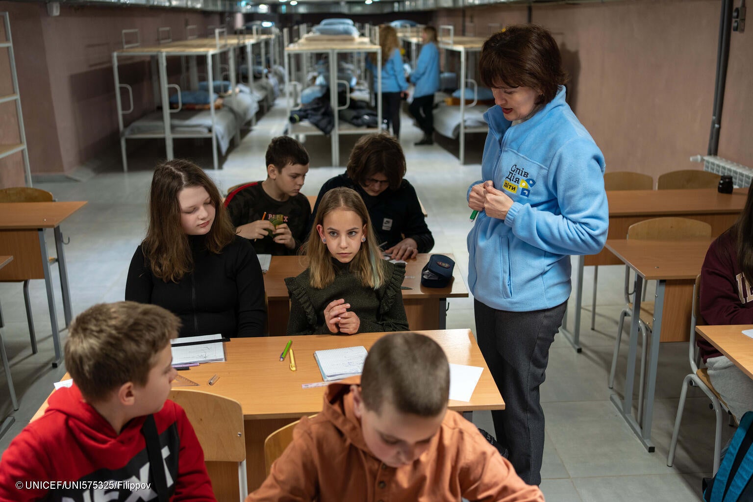 「何百万人もの子どもが常に恐怖を感じながら暮らしており、その多くは空襲警報の下、1日平均最大6時間に相当する時間を地下のシェルターで過ごしています。子どもたちへの継続的かつ一層の支援がなければ、この戦争による心の傷は世代を超えて尾を引くことでしょう」(ラッセル事務局長)