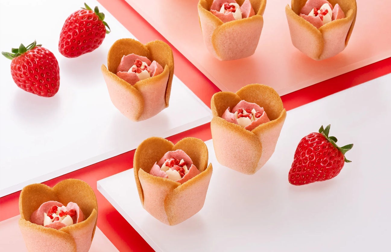 苺を主役にした「チューリップローズ いちご」。チューリップラングドシャに、あまおう仕立てのショコラクリームローズを咲かせました。ジュワッと広がるあまおう苺の甘酸っぱい果汁感と、ミルクの優しい甘さが合わさったいちごミルクのような味わい。期間限定フレーバーです。