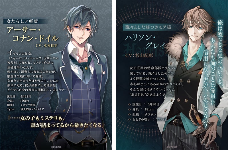 『イケメンヴァンパイア◆偉人たちと恋の誘惑』&『イケメンヴィラン 闇夜にひらく悪の恋』アプリ間コラボキャンペーン開催!~「アーサー・コナン・ドイル」と「ハリソン・グレイ」の邂逅ストーリーがもらえる!~