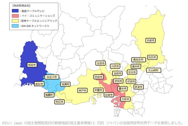 <京阪神地域において阪急阪神ホールディングスグループが地域BWAの免許を取得している自治体>