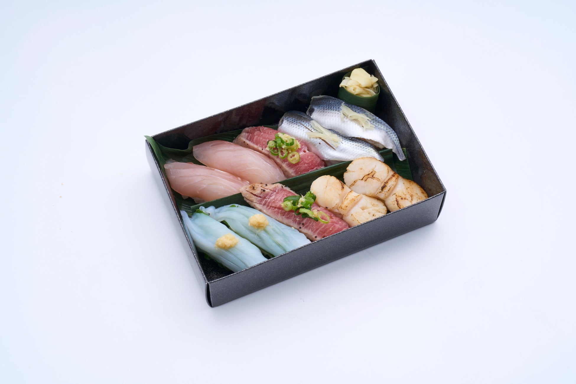 炙り塩、生姜塩をのせた鈴富イチオシのローストツナやコハダ、鯛の昆布締めなど、サッパリお召し上がりください。